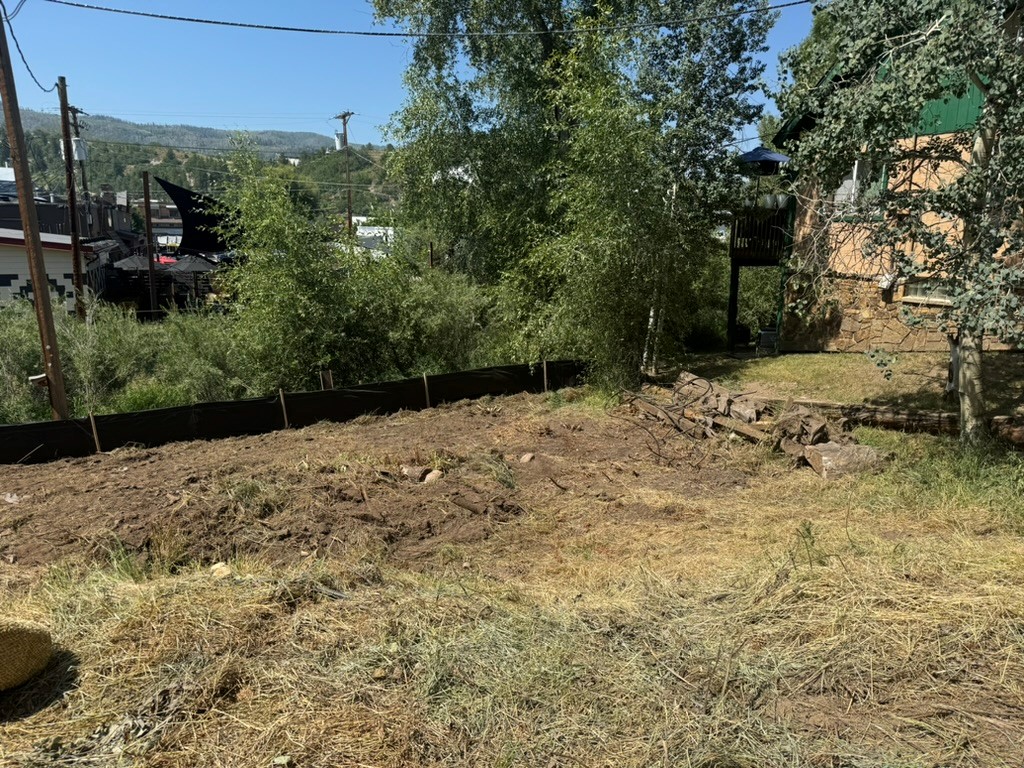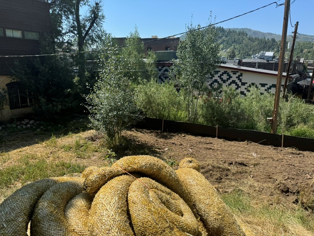 Wire backed silt fence is required at toe of fill material between Soda Creek.