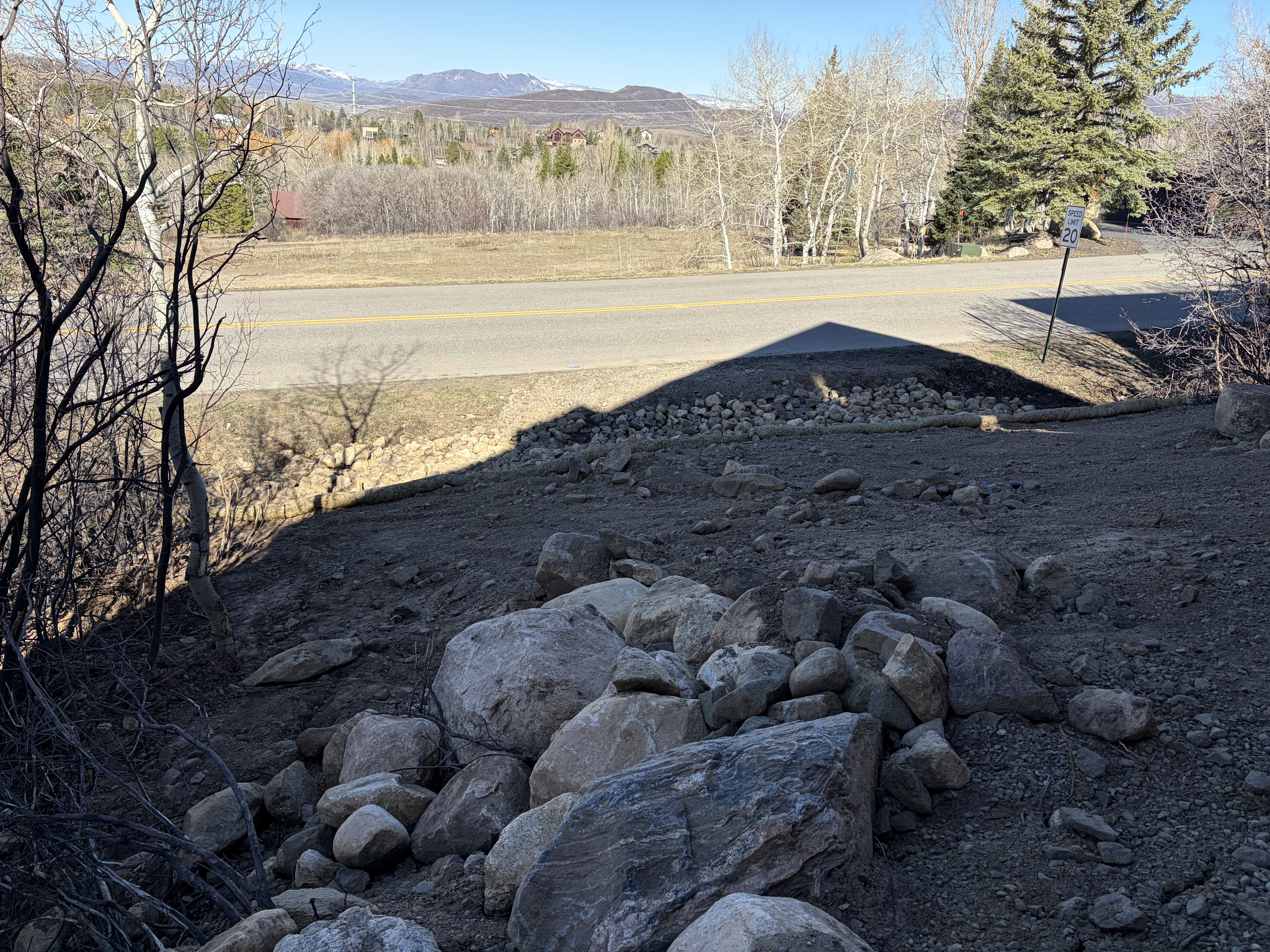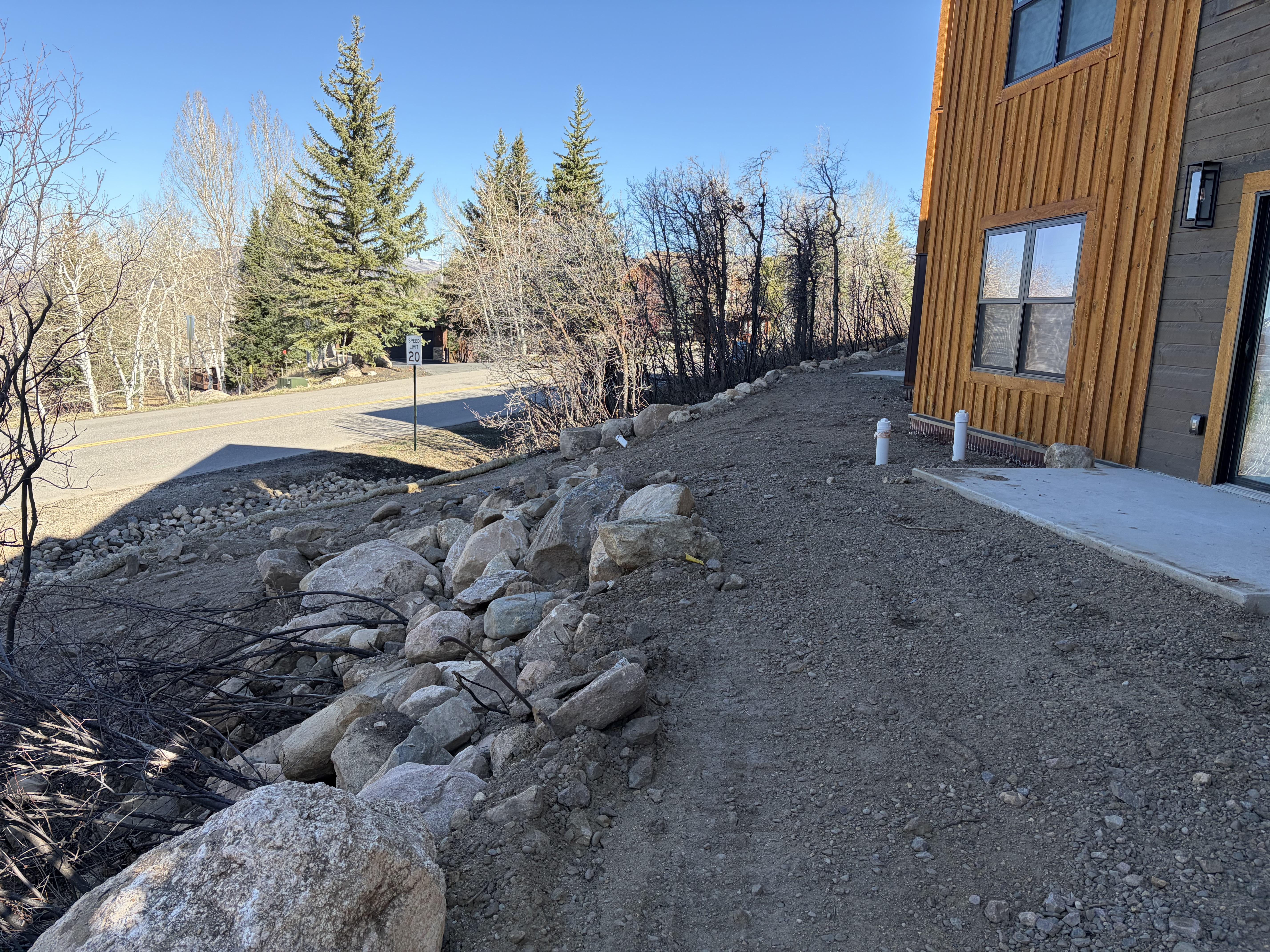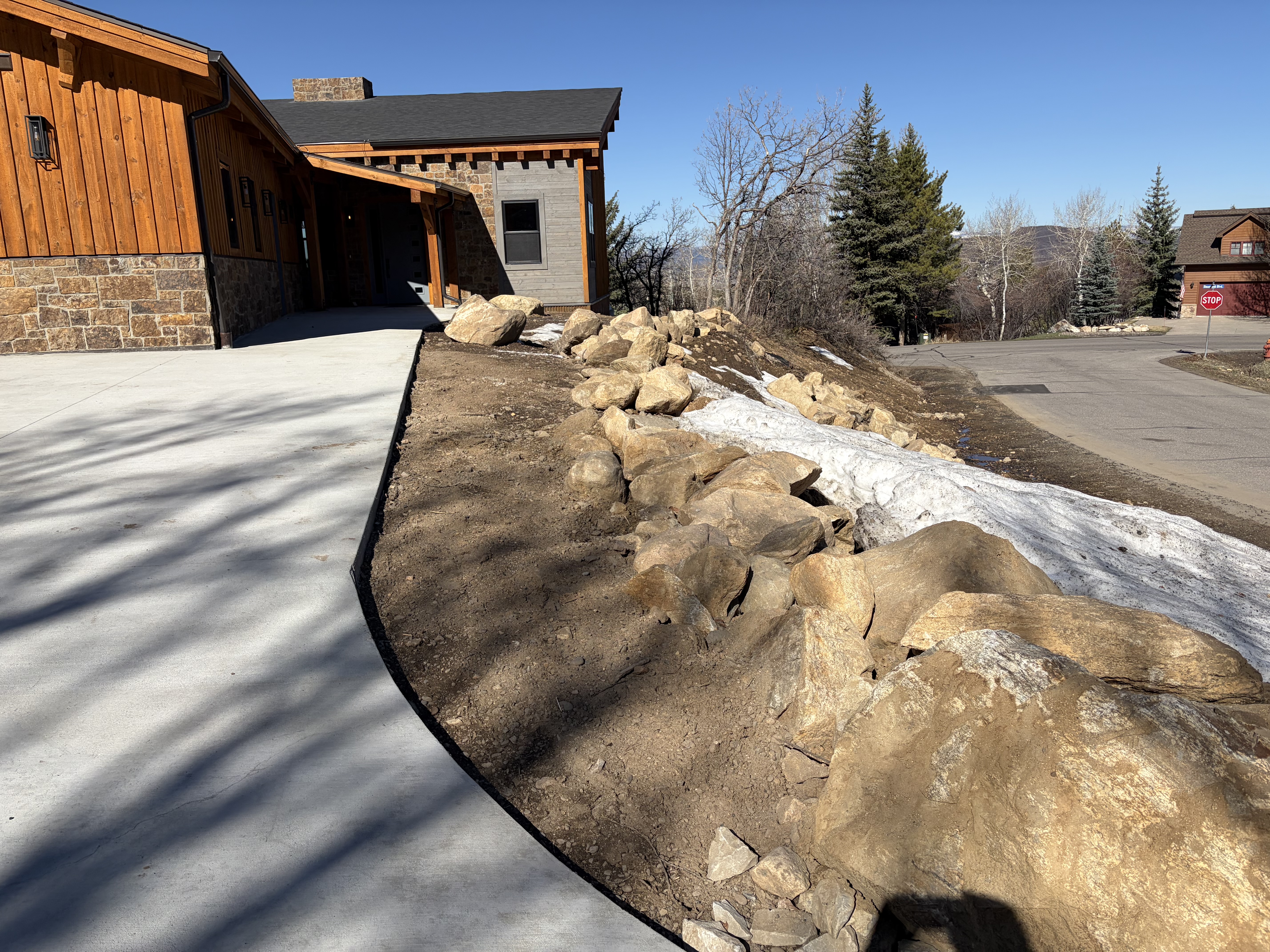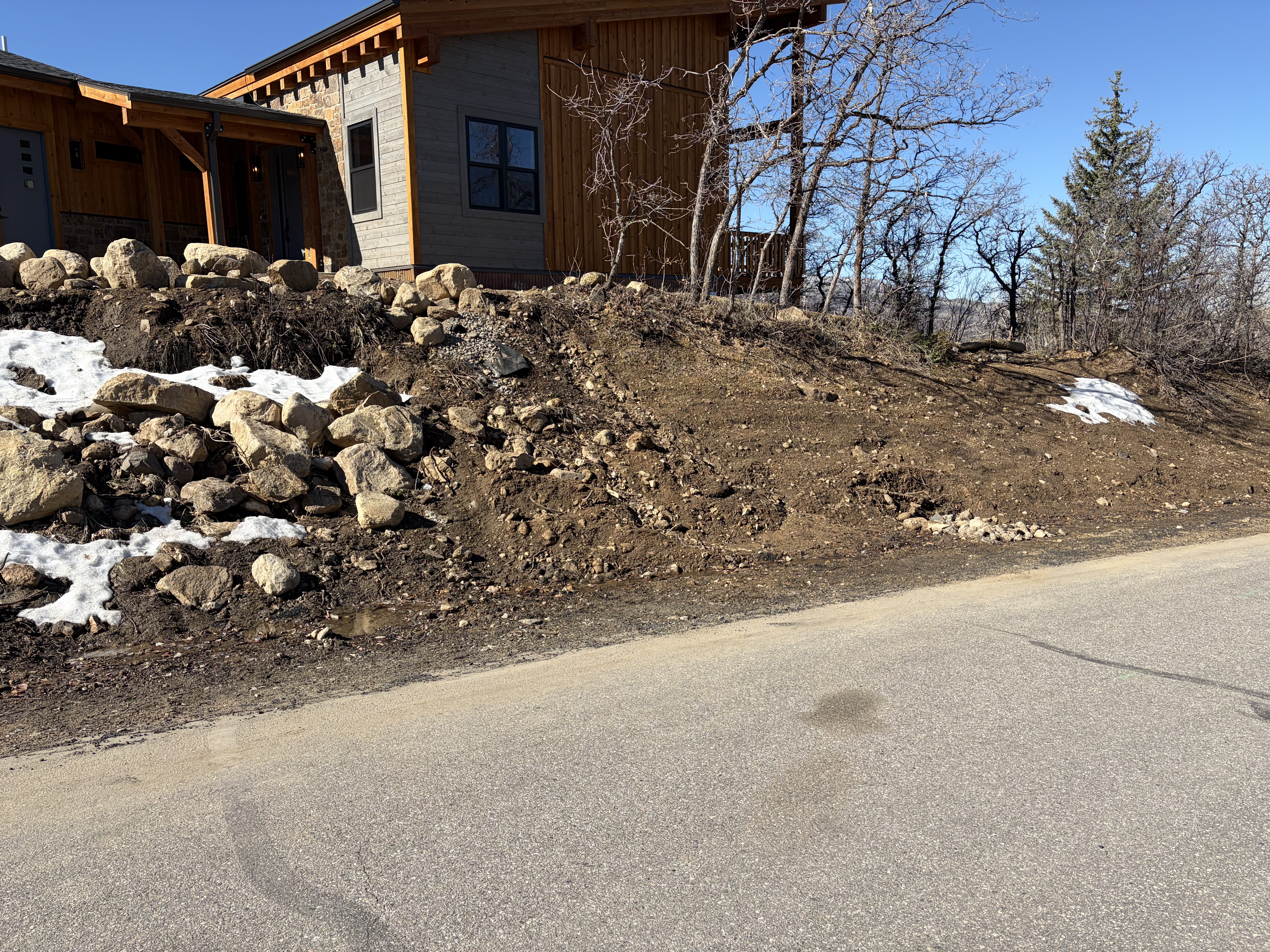 Road base shouldering required where damaged along Sundance Ct approximately 50' up and down from the driveway access. City requires 18" of road base from edge of pavement. This will also need to be applied along Steamboat Blvd where the temporary access was used.