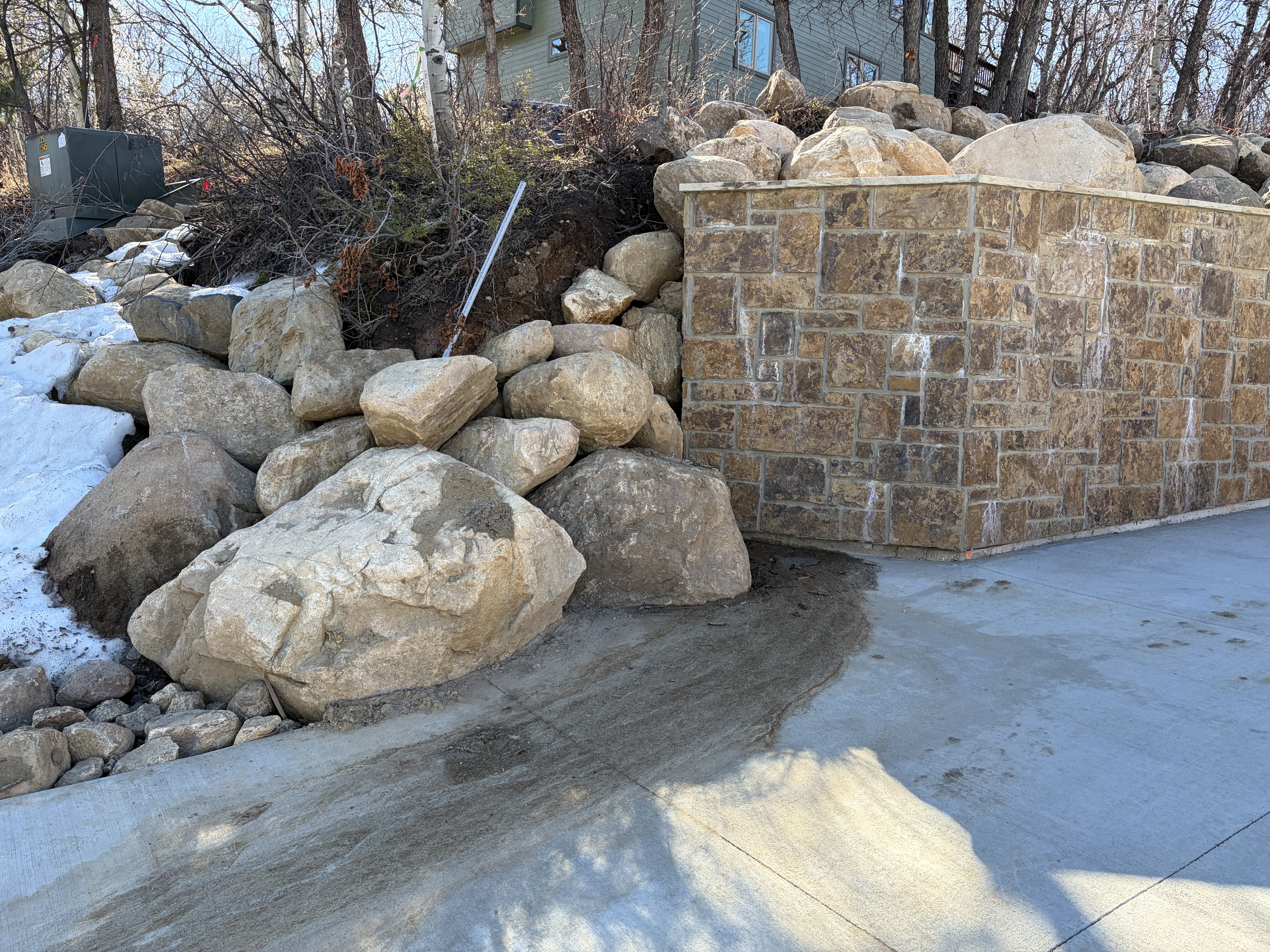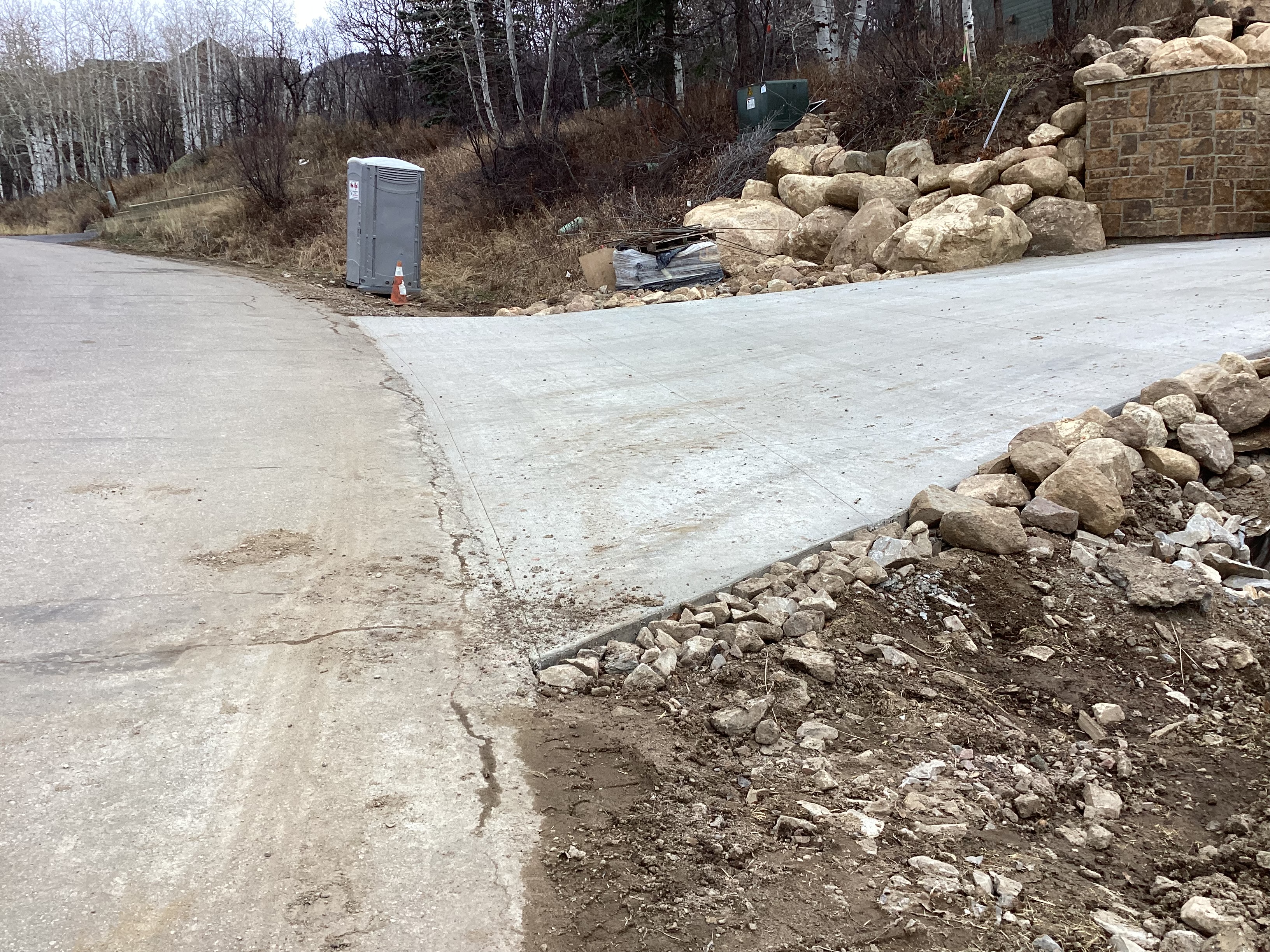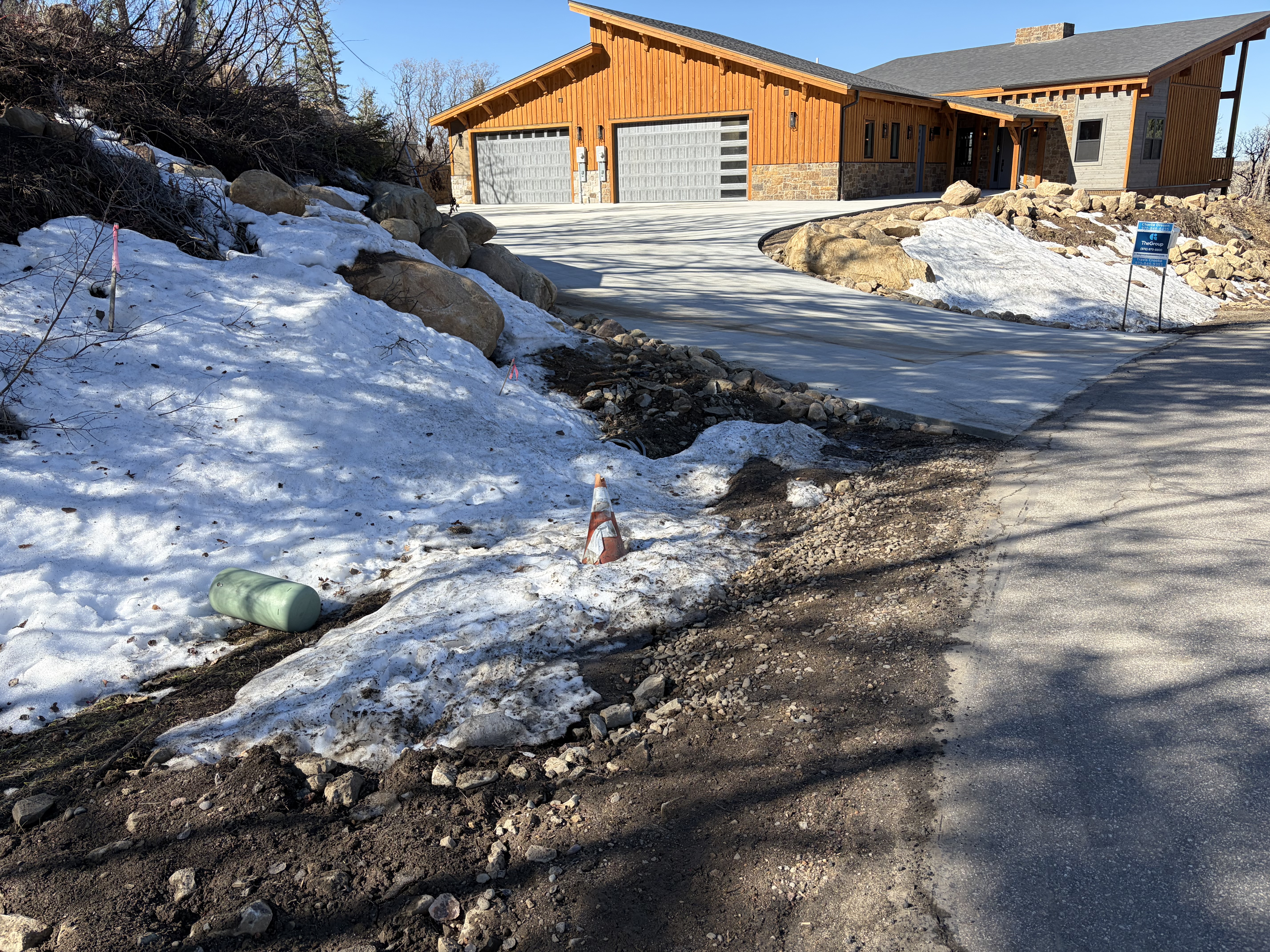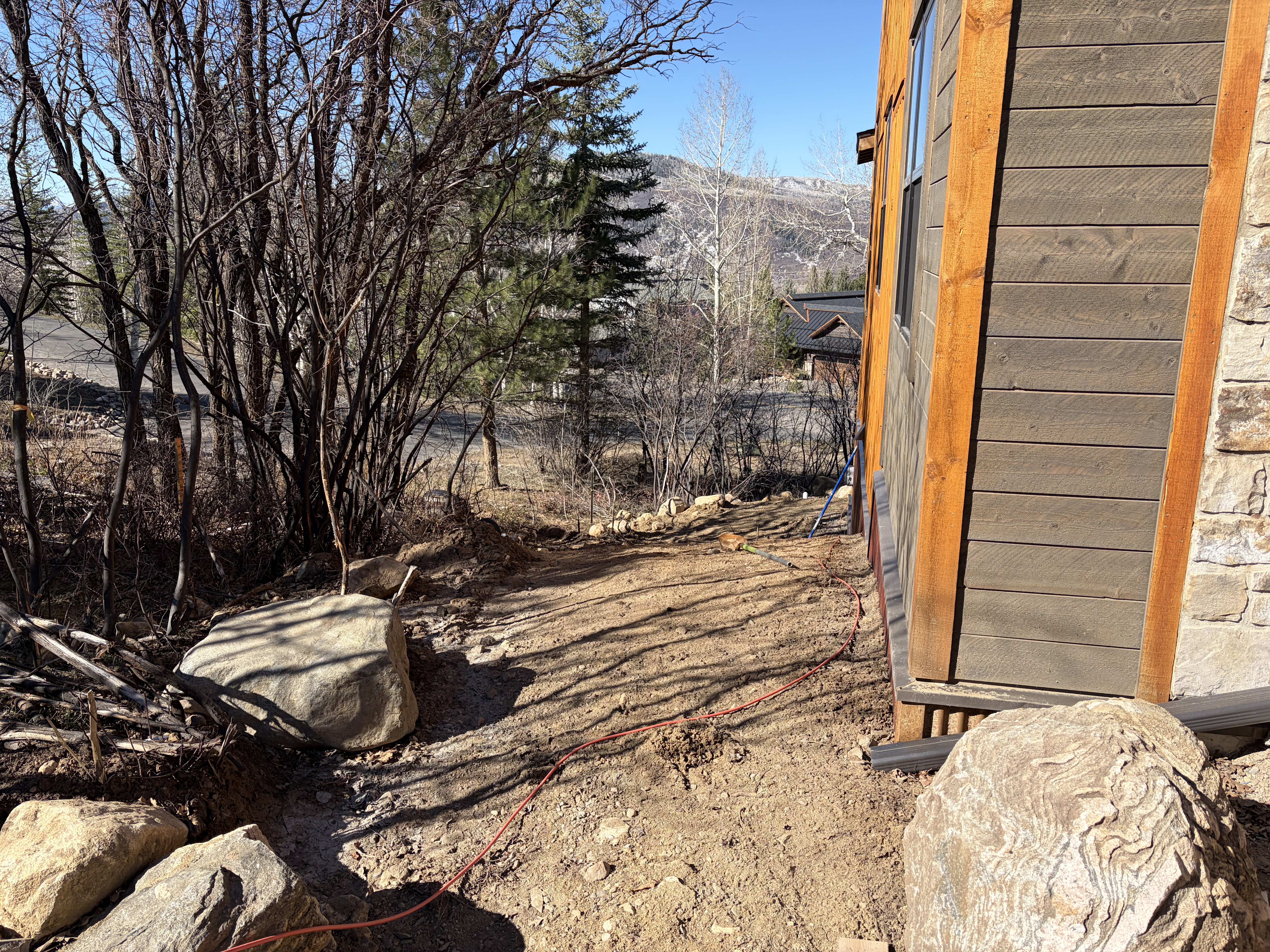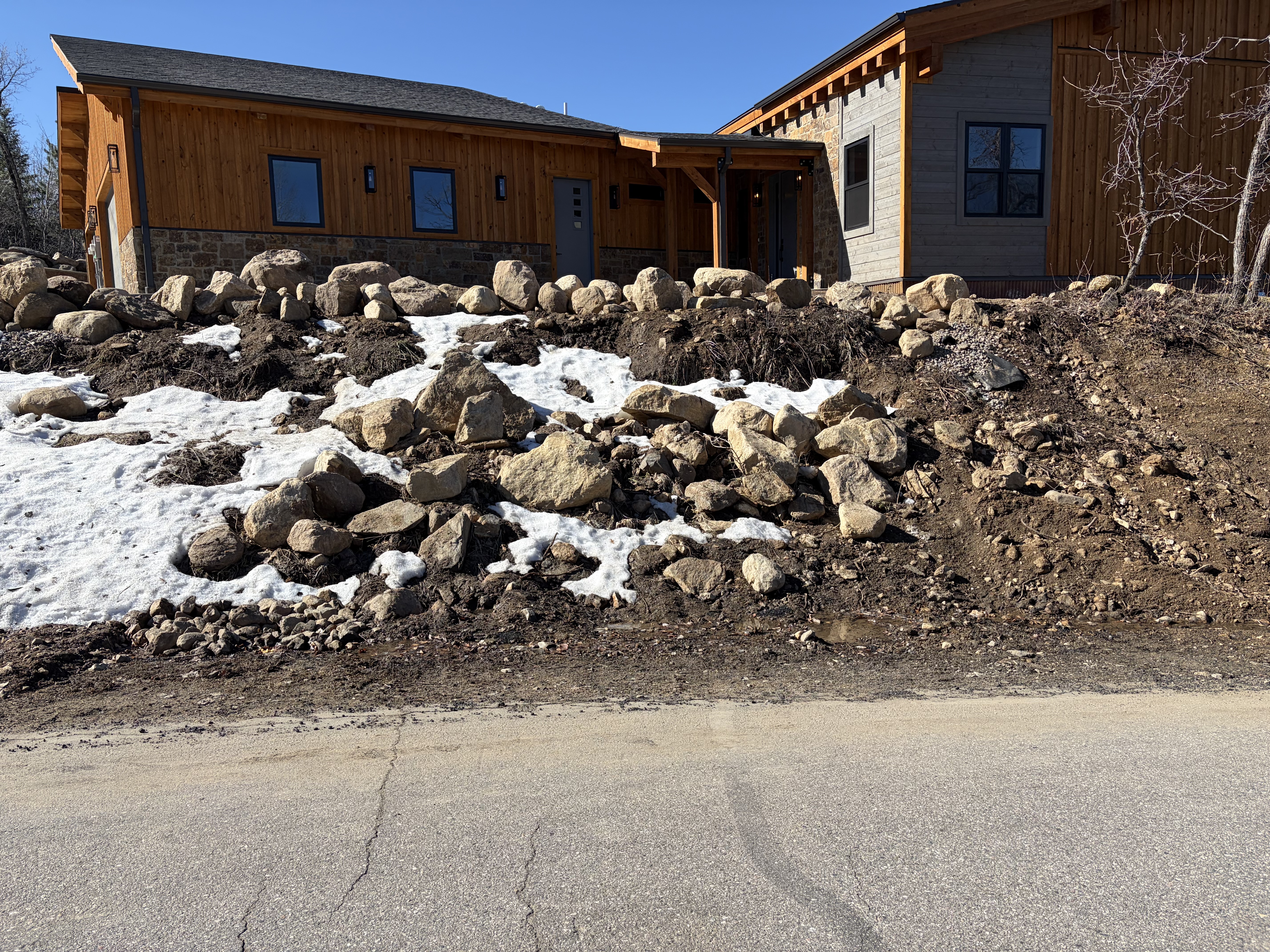 Road base shouldering required where damaged along Sundance Ct approximately 50' up and down from the driveway access. City requires 18" of road base from edge of pavement. This will also need to be applied along Steamboat Blvd where the temporary access was used.