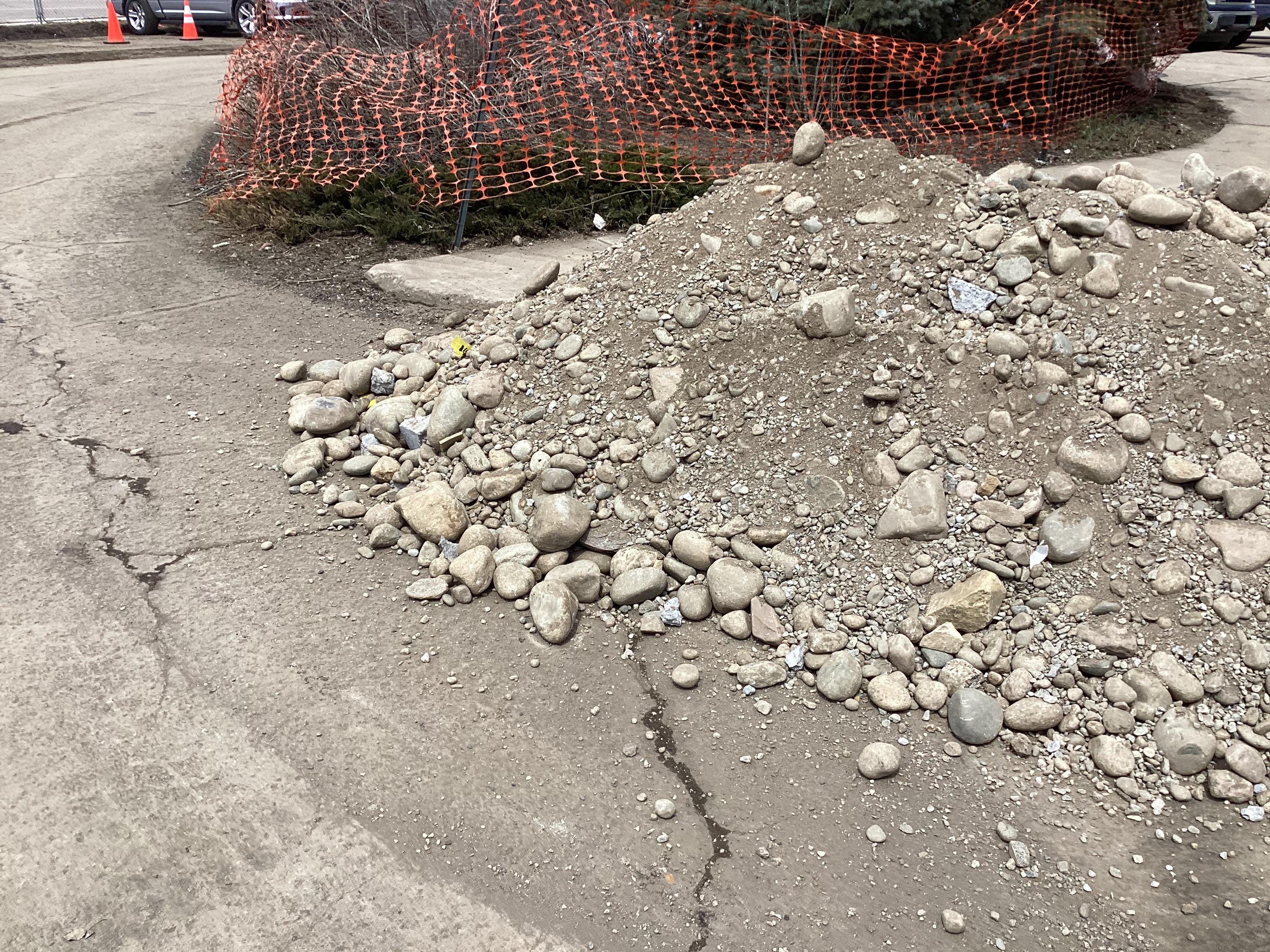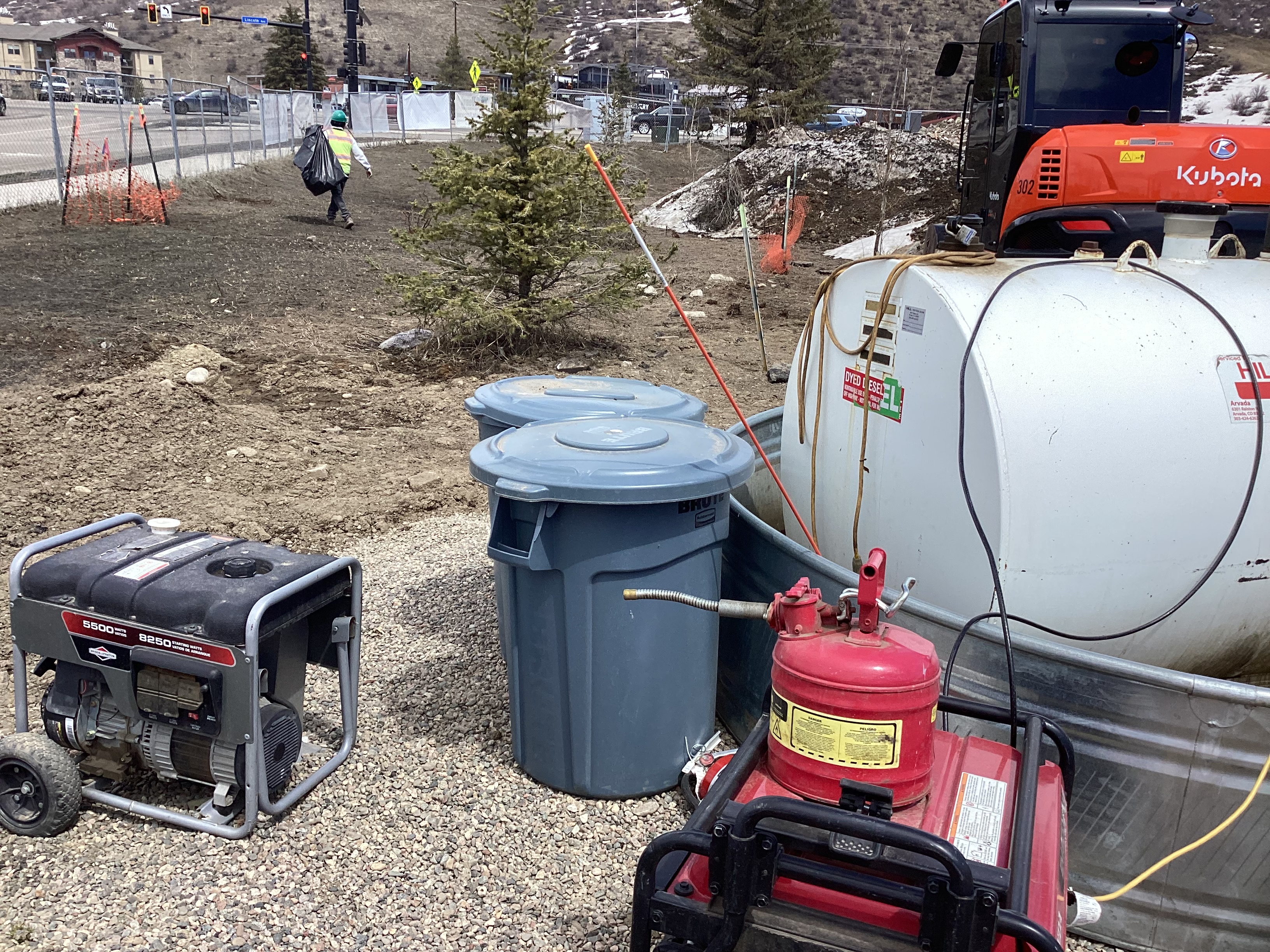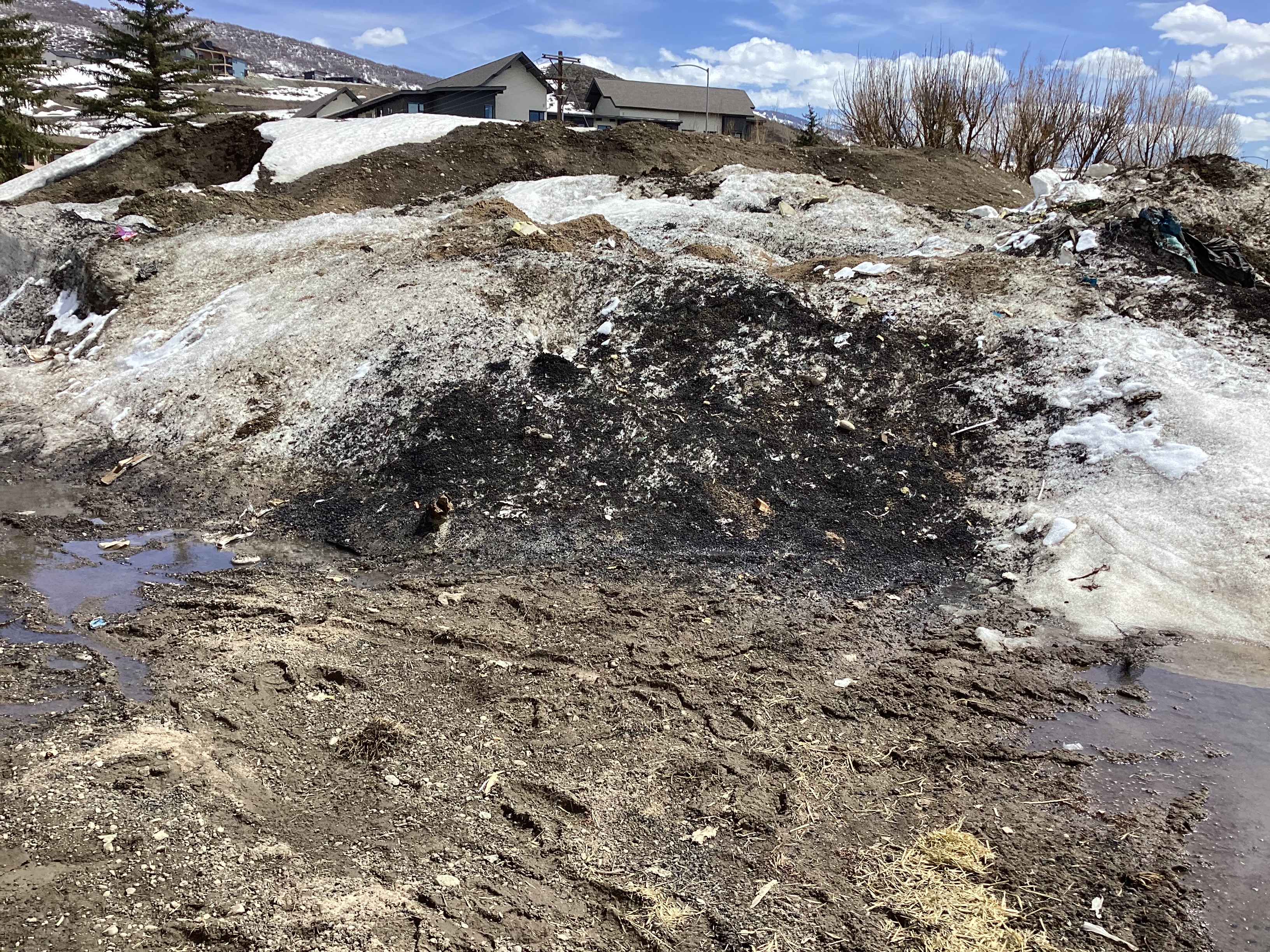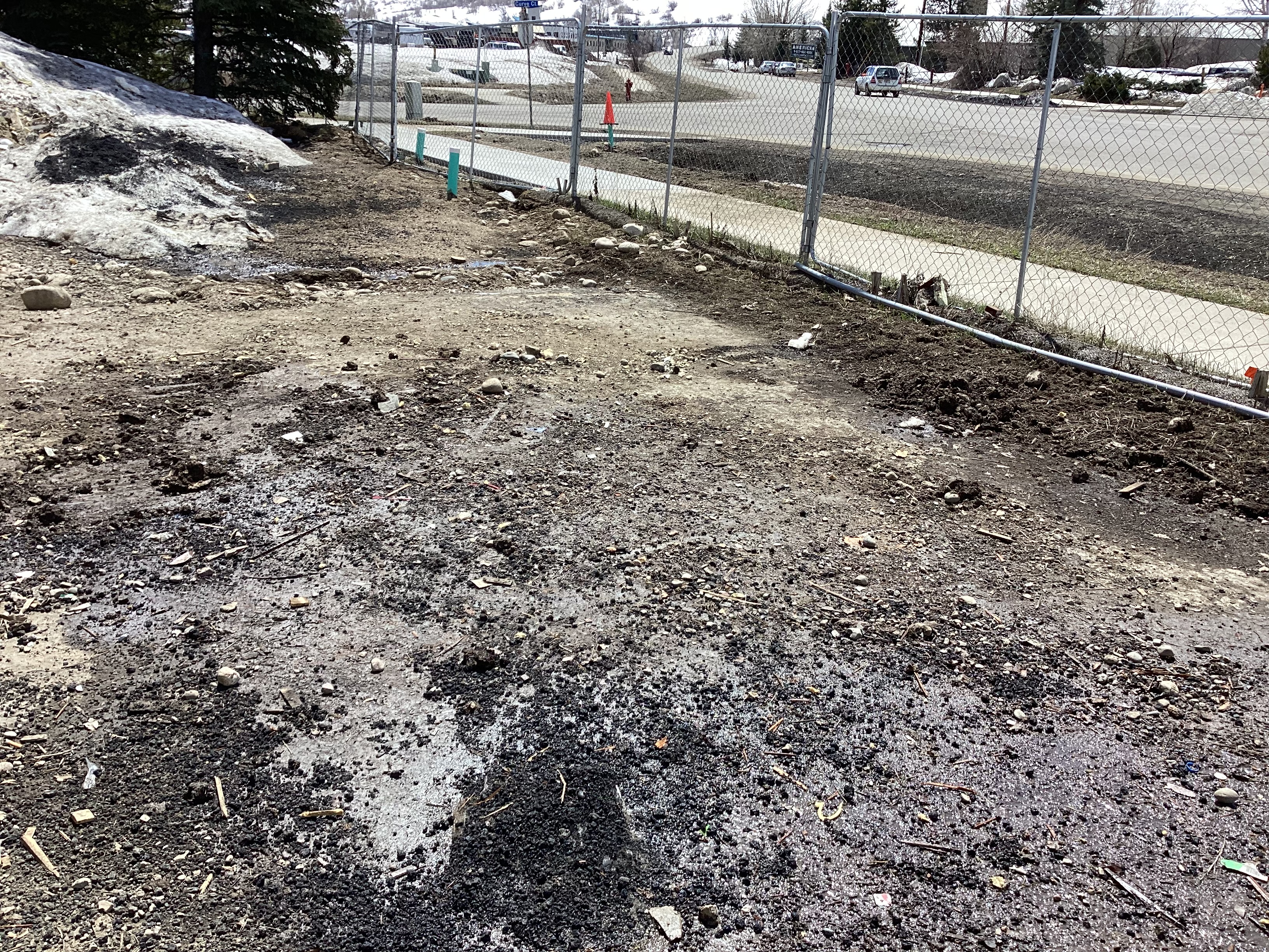 Continue to pick up trash at west side of site and north corner where snow storage piles still exist or where melted out.
