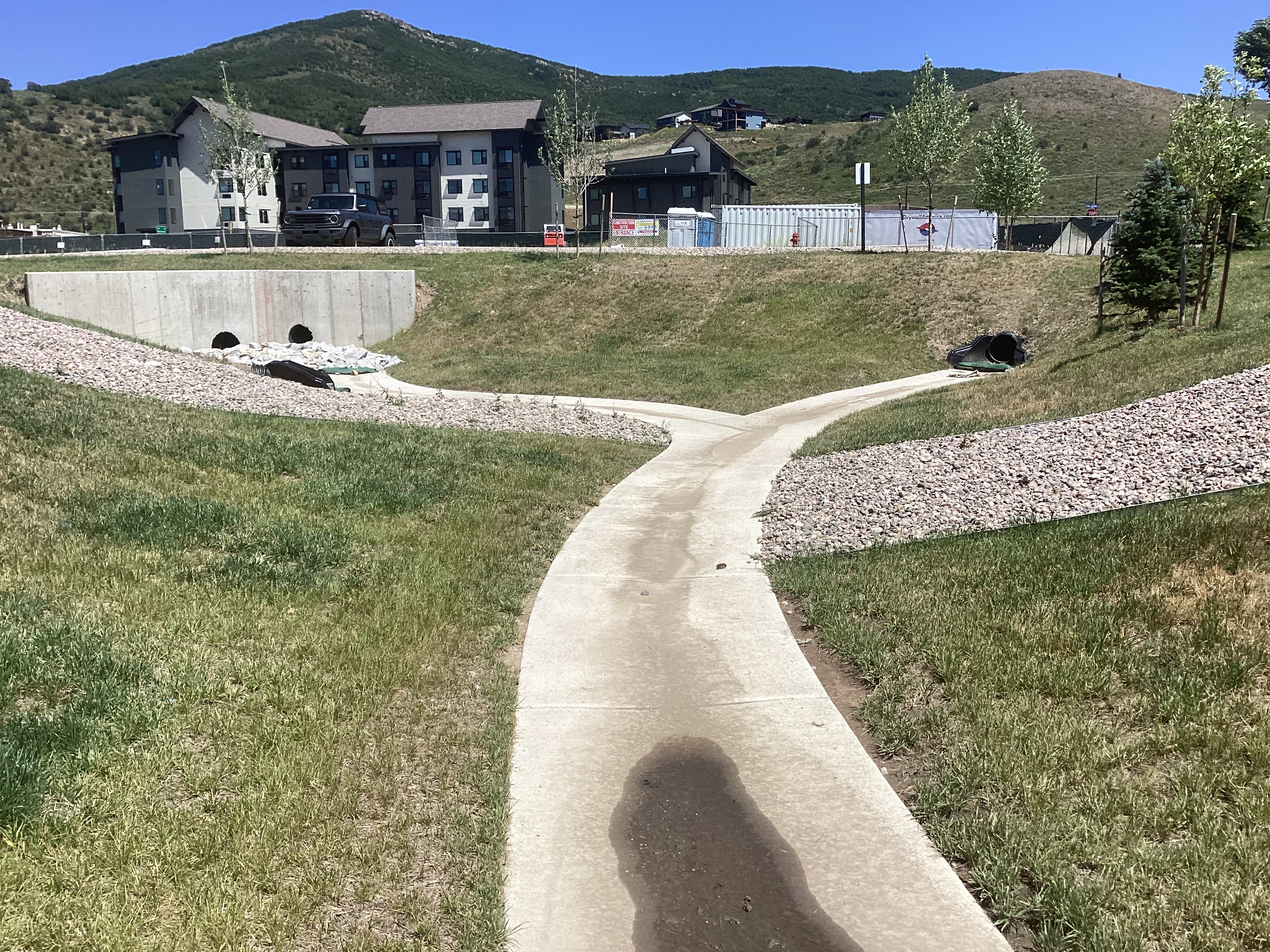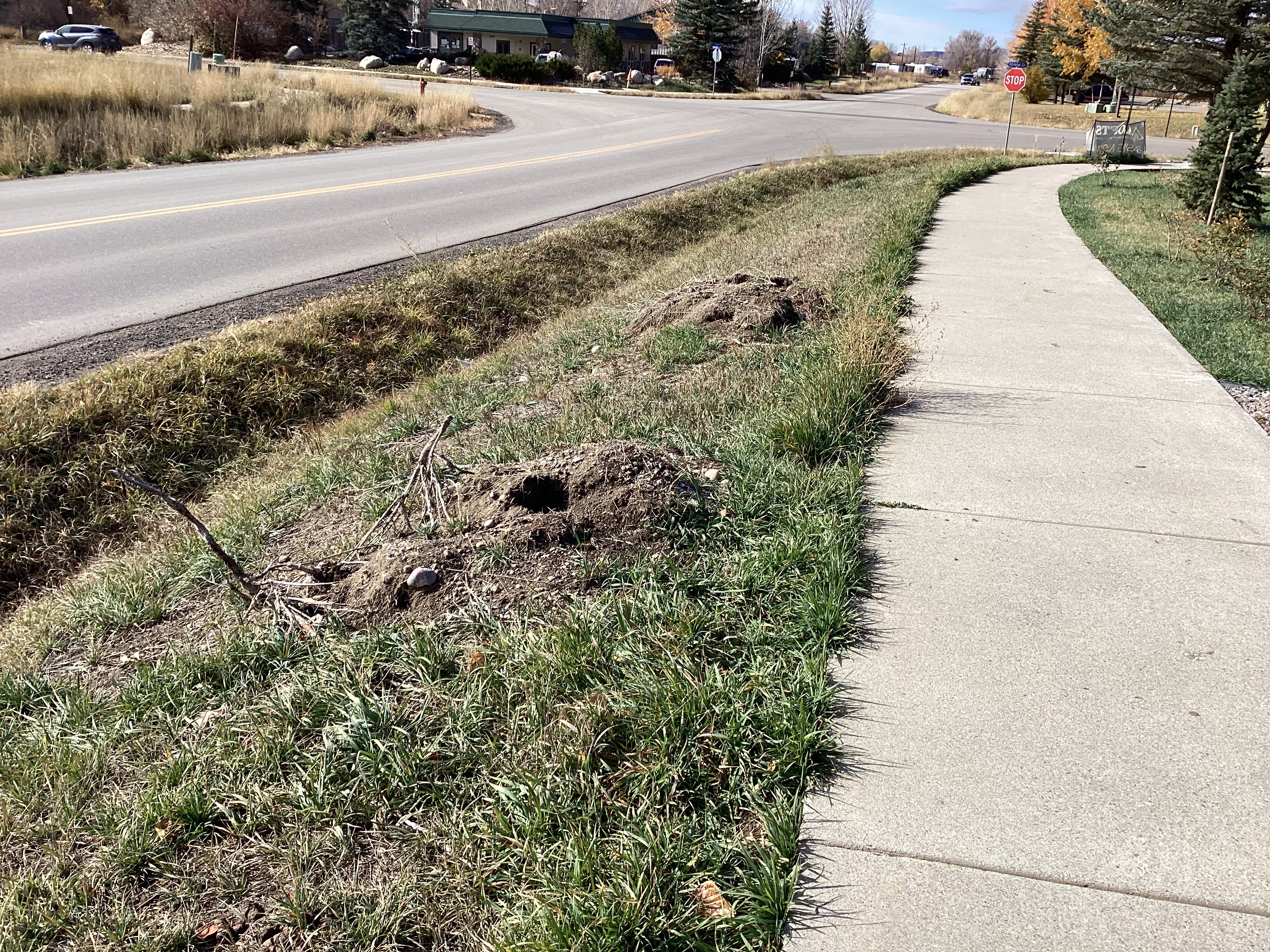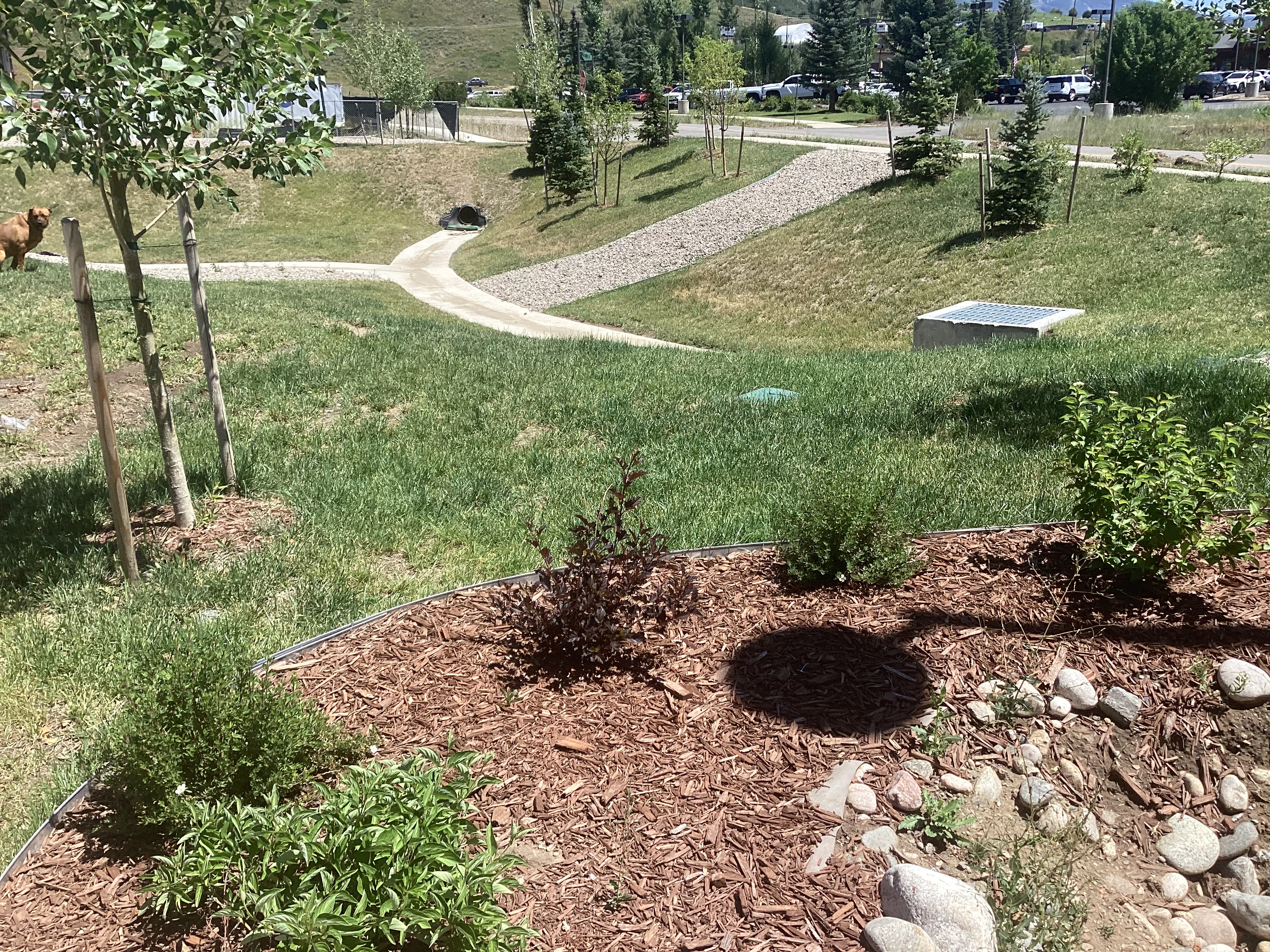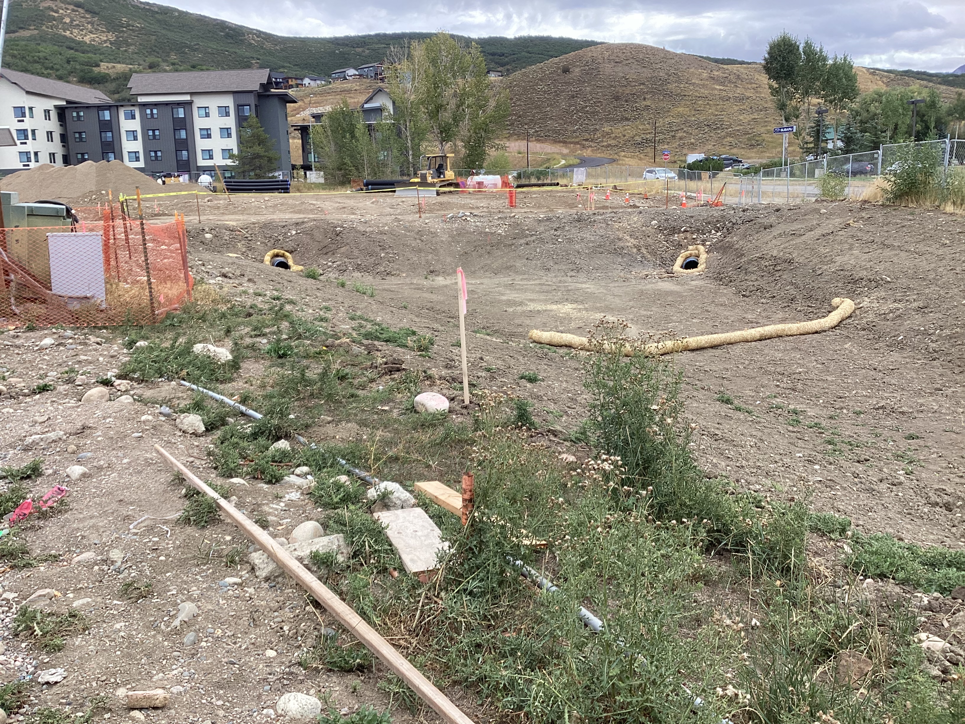Do not line excavated ditch along Shield Dr. with cobble. Ditch needs to be revegetated and lined with erosion control blankets.