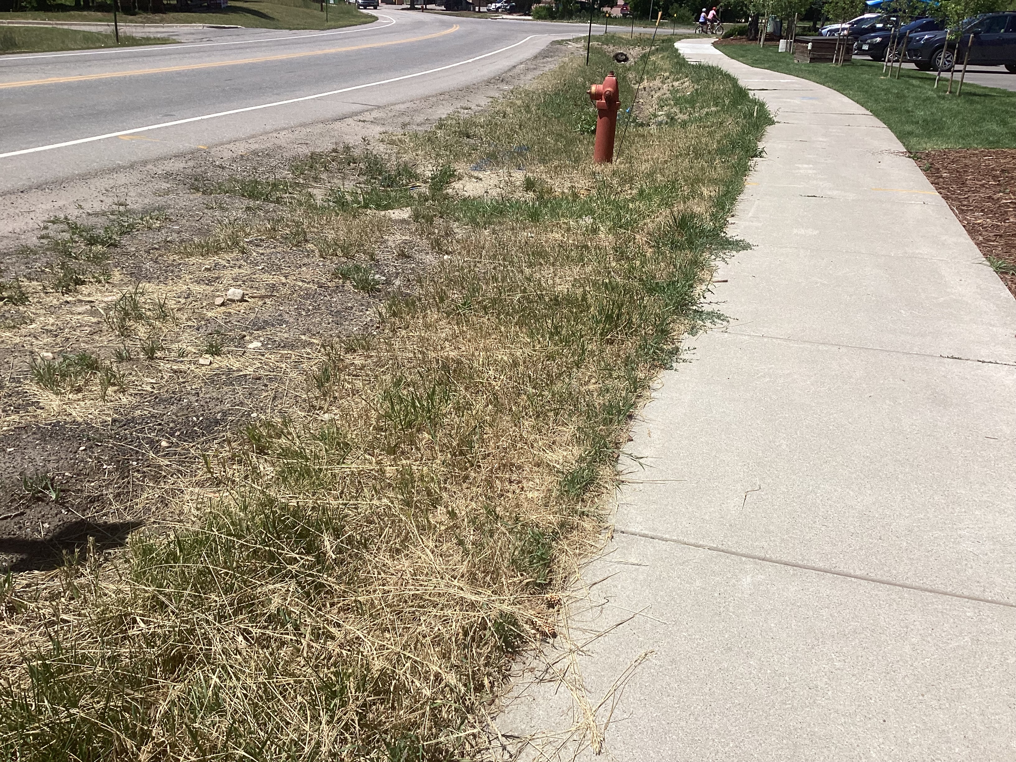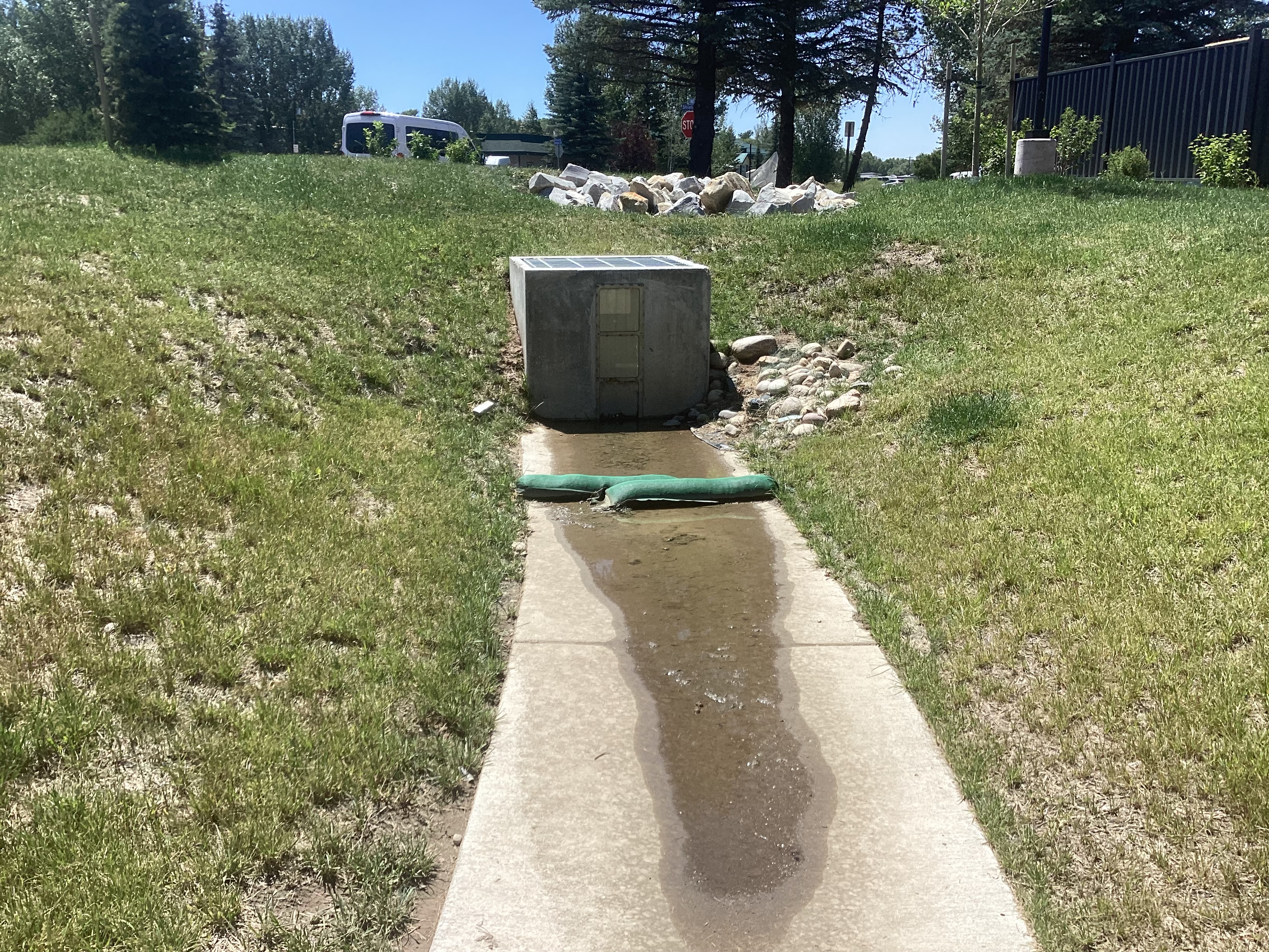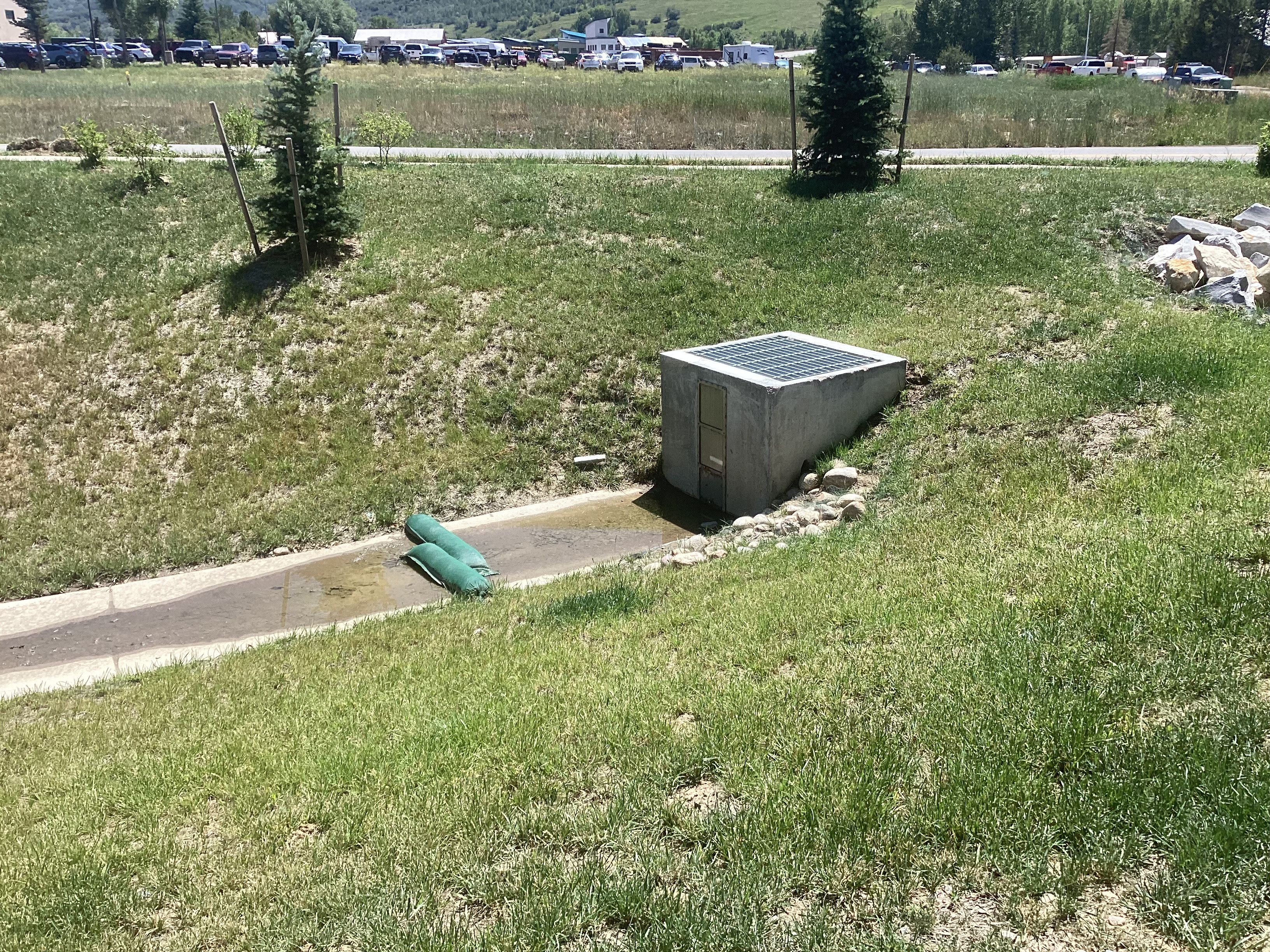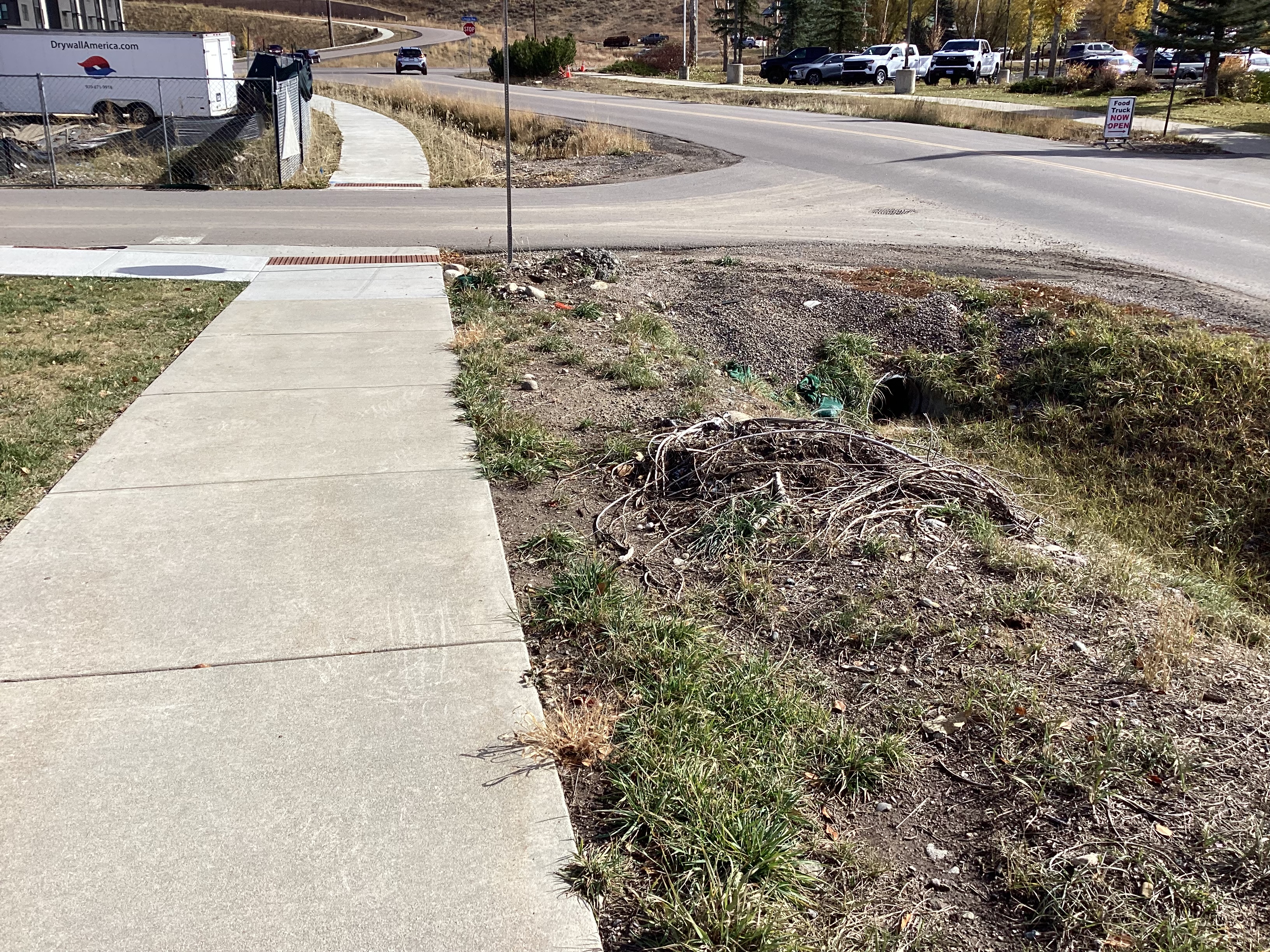 Straw wattle check dams in need of maintenance at corner of Shield Dr. and Curve Ct.