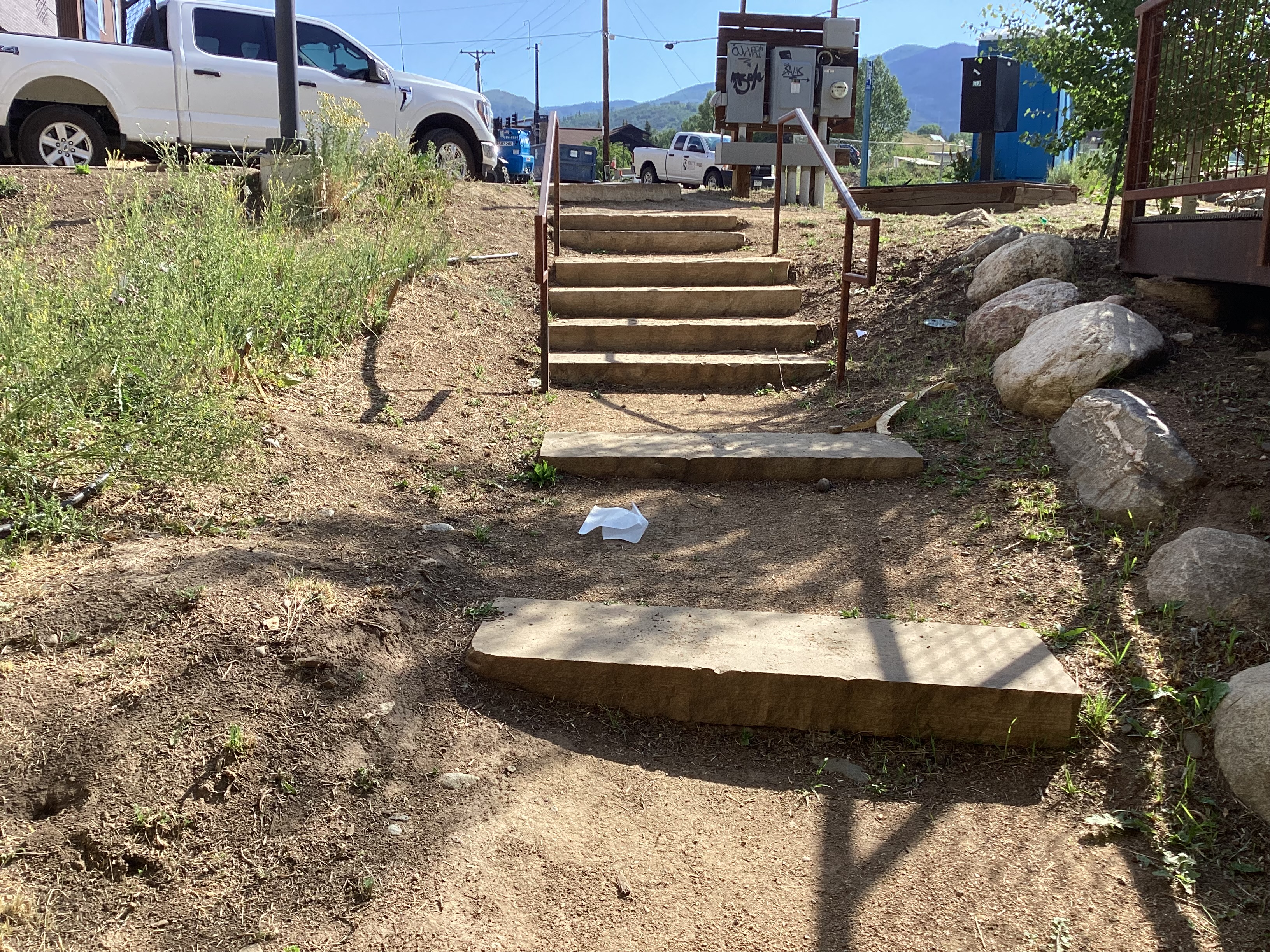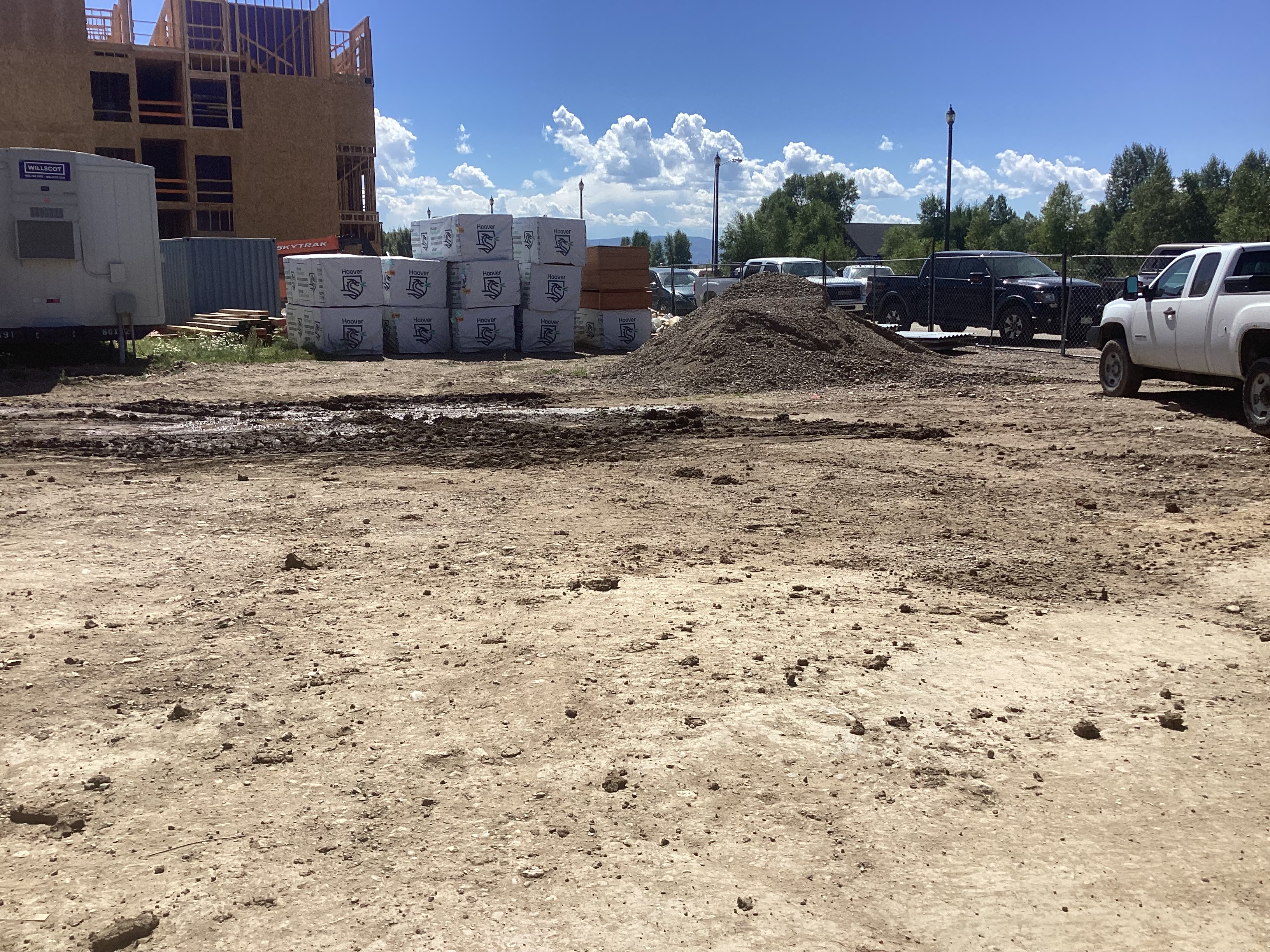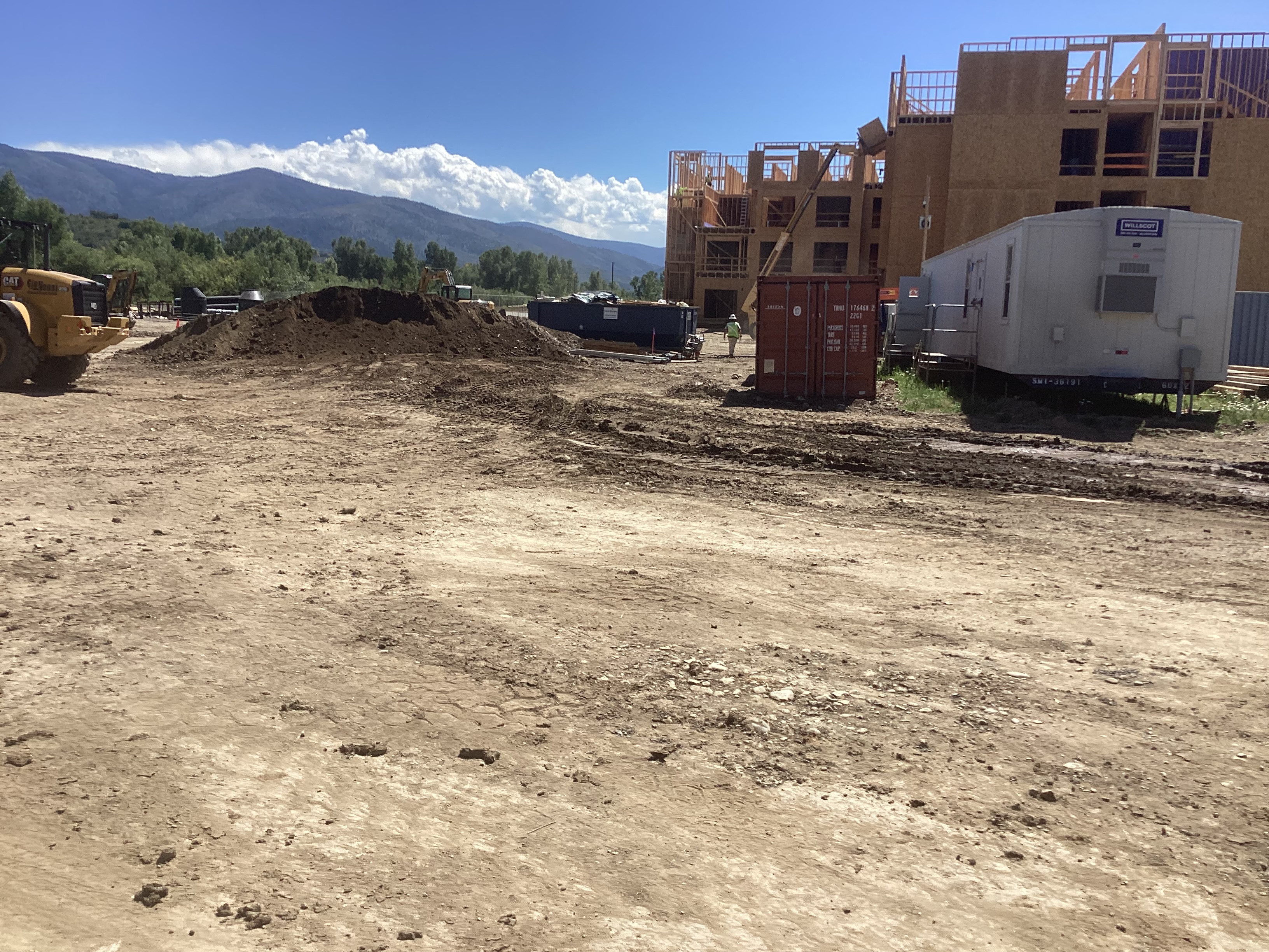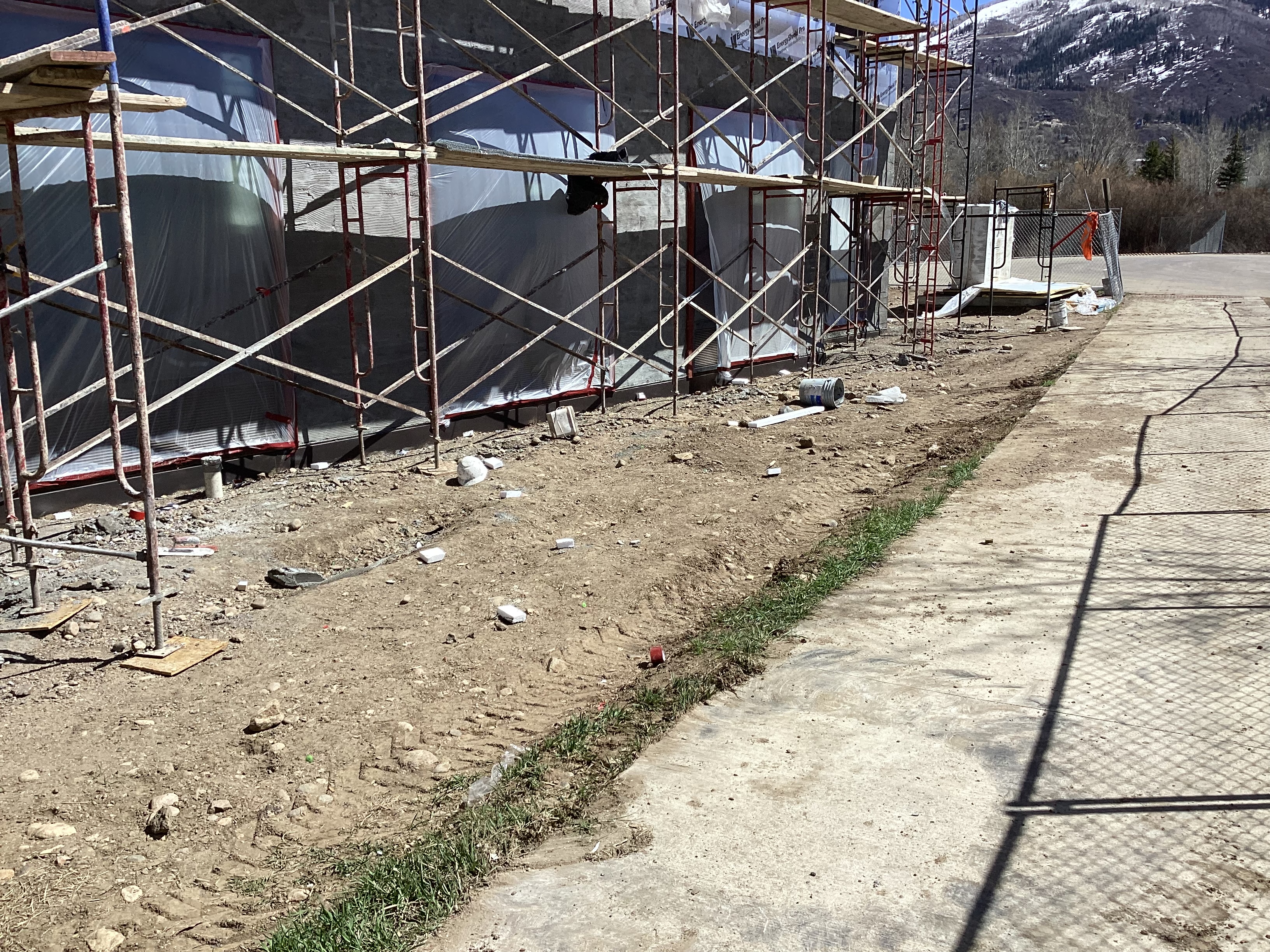 Trash and building particles were observed at various locations around the site identified during the inspection. Trash is required to be picked up throughout the site daily and disposed of properly.