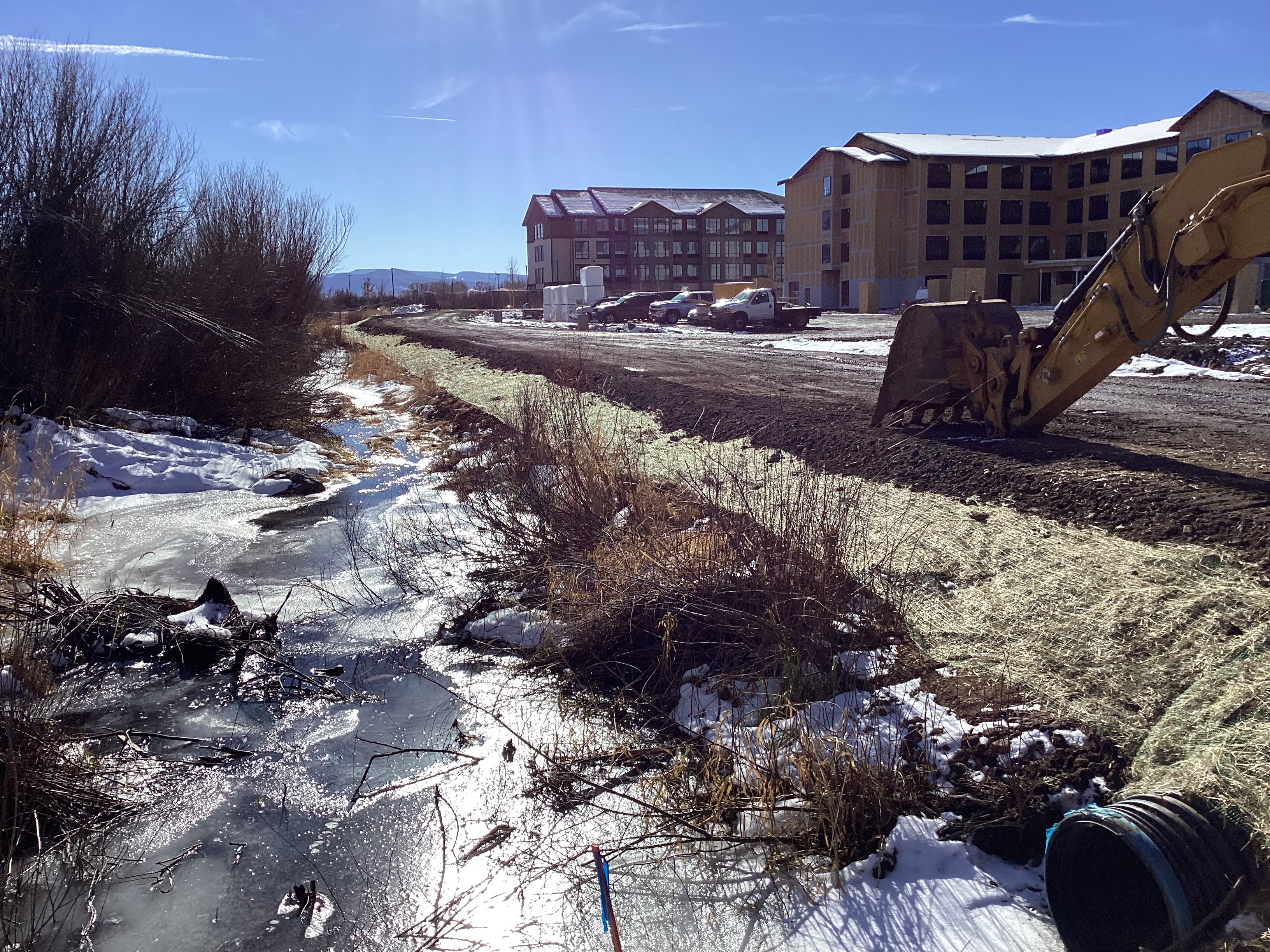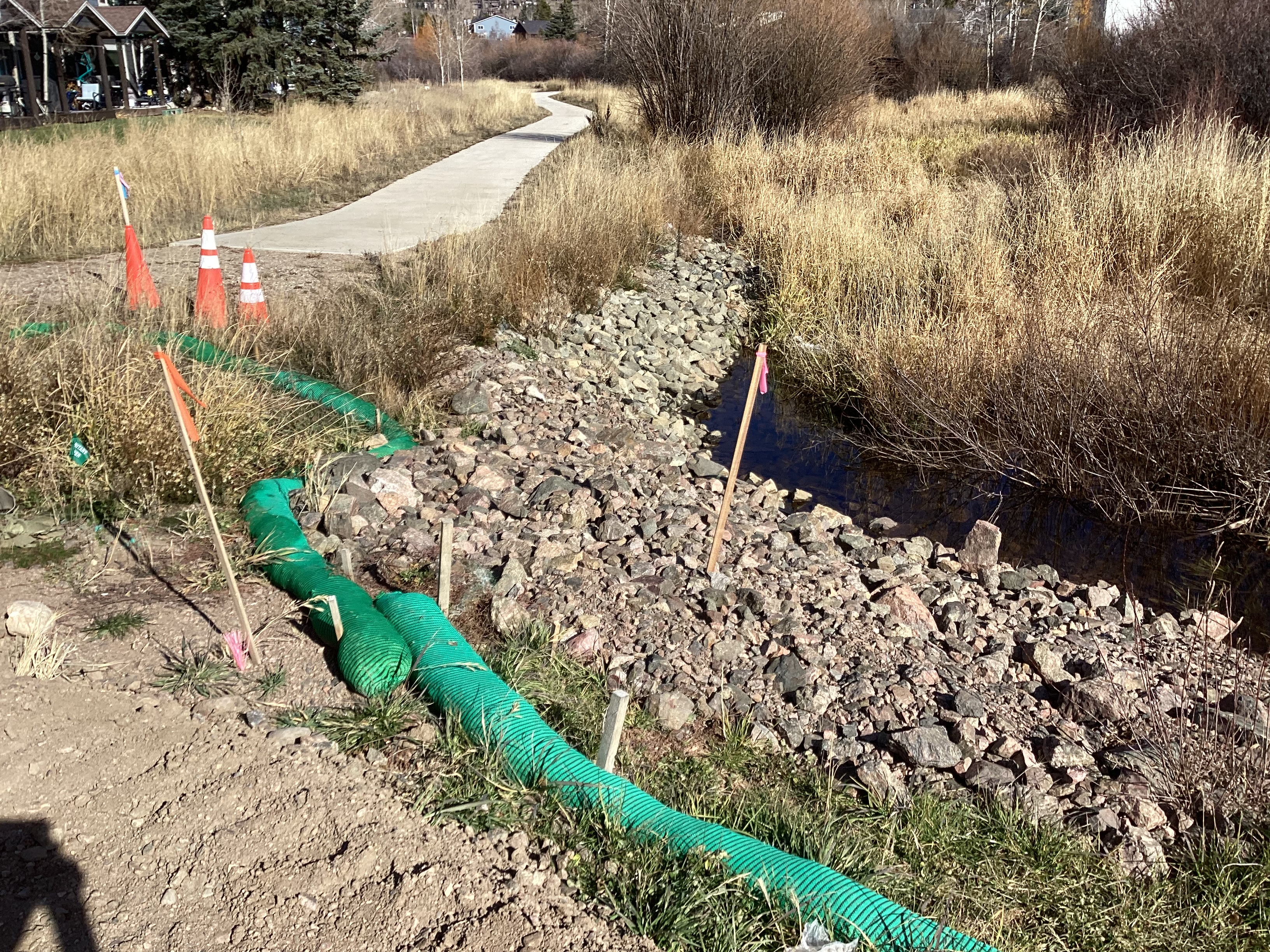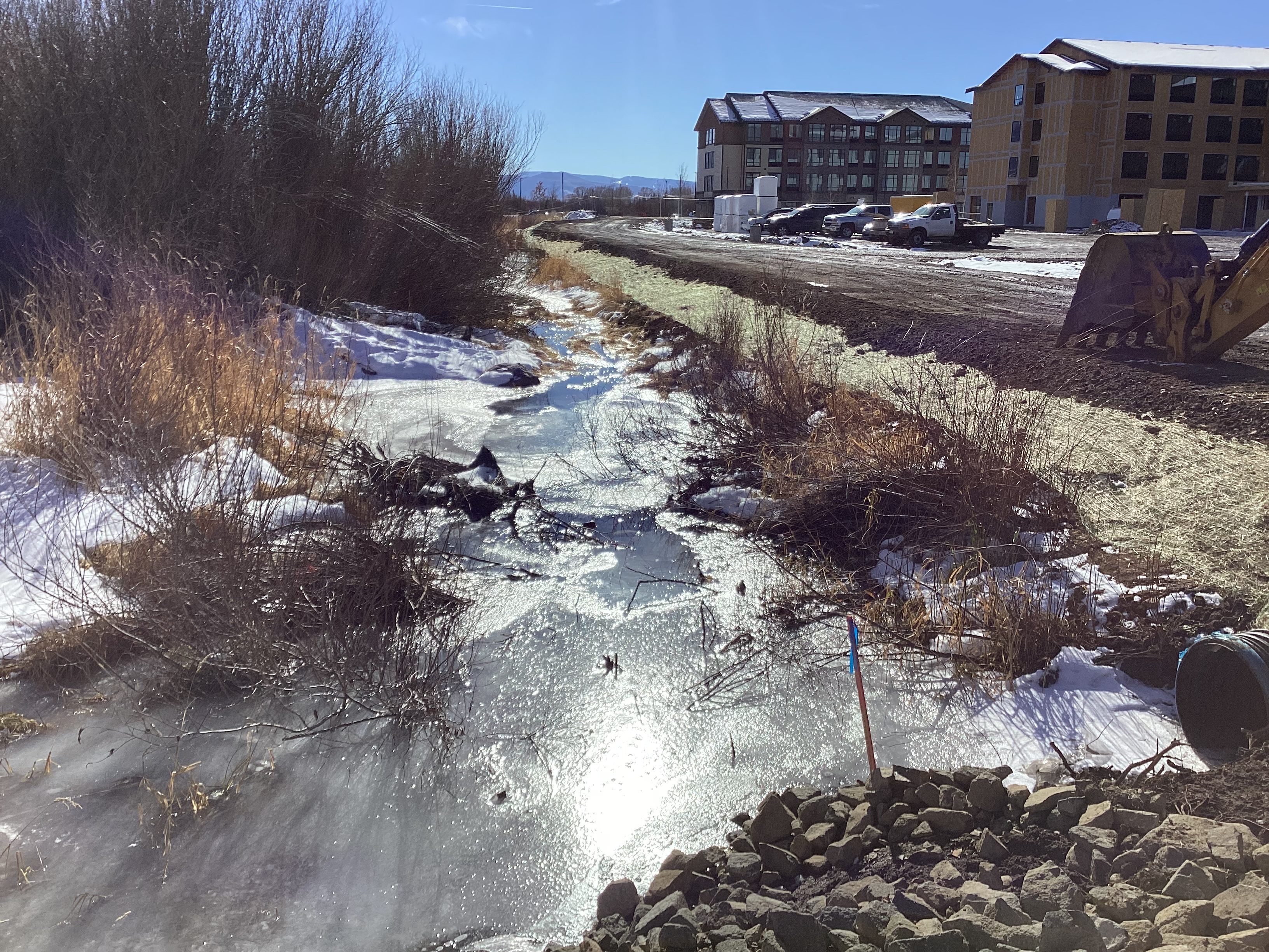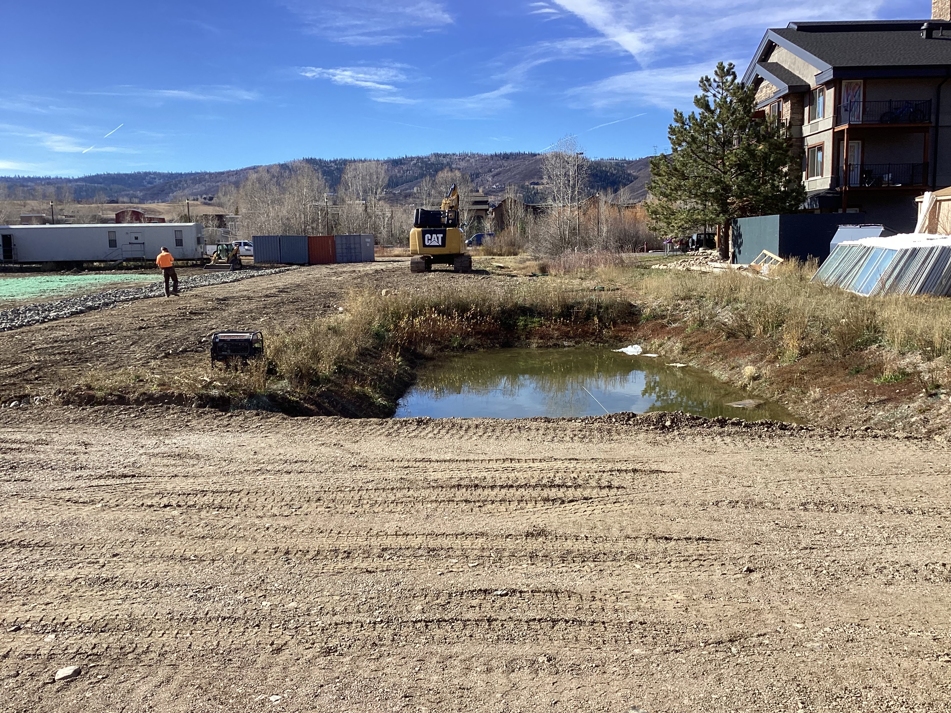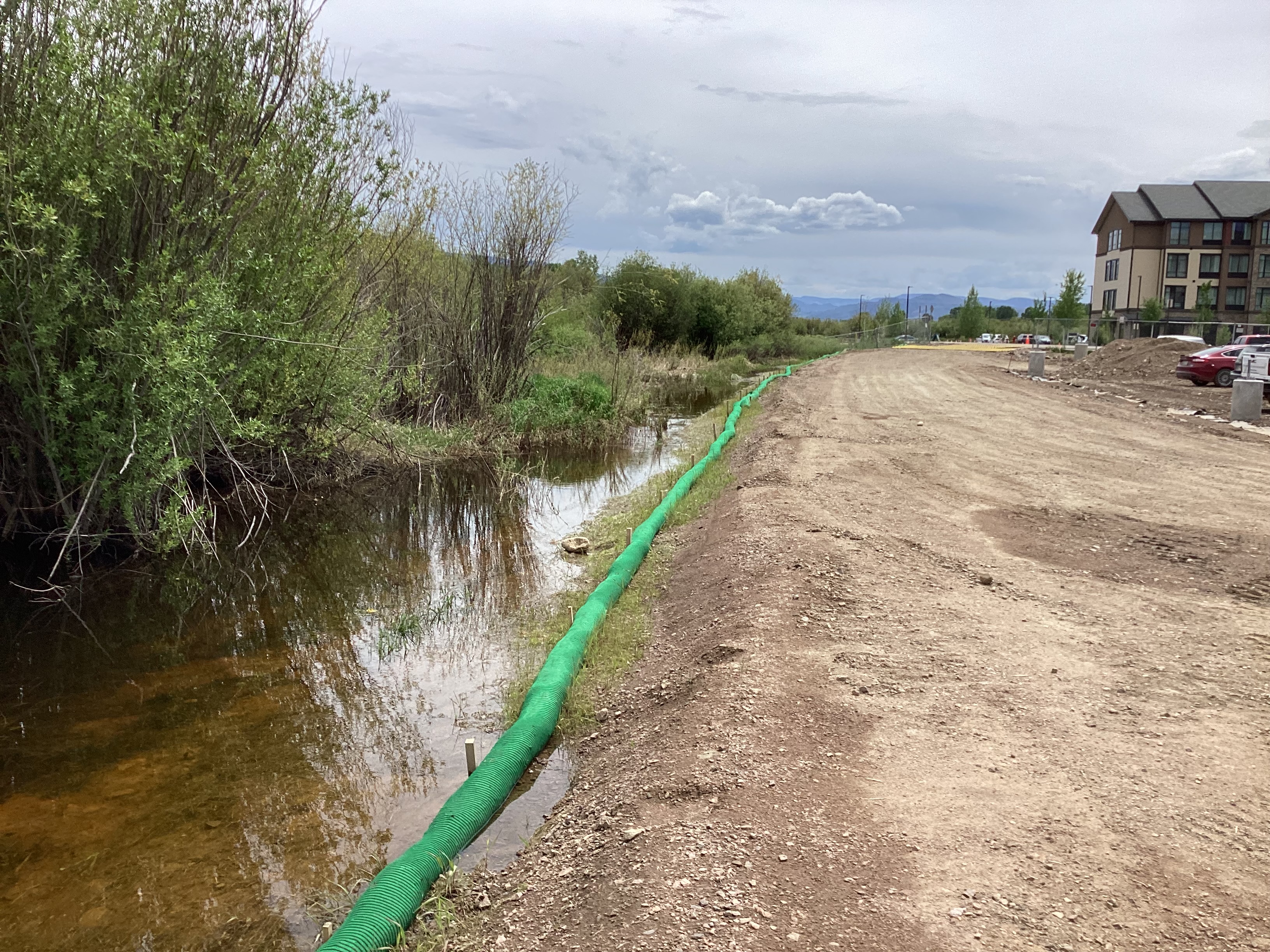 The sediment basin that was inundated with runoff from Walton Creek needs to be pumped out once water has receded to maintain its capacity.