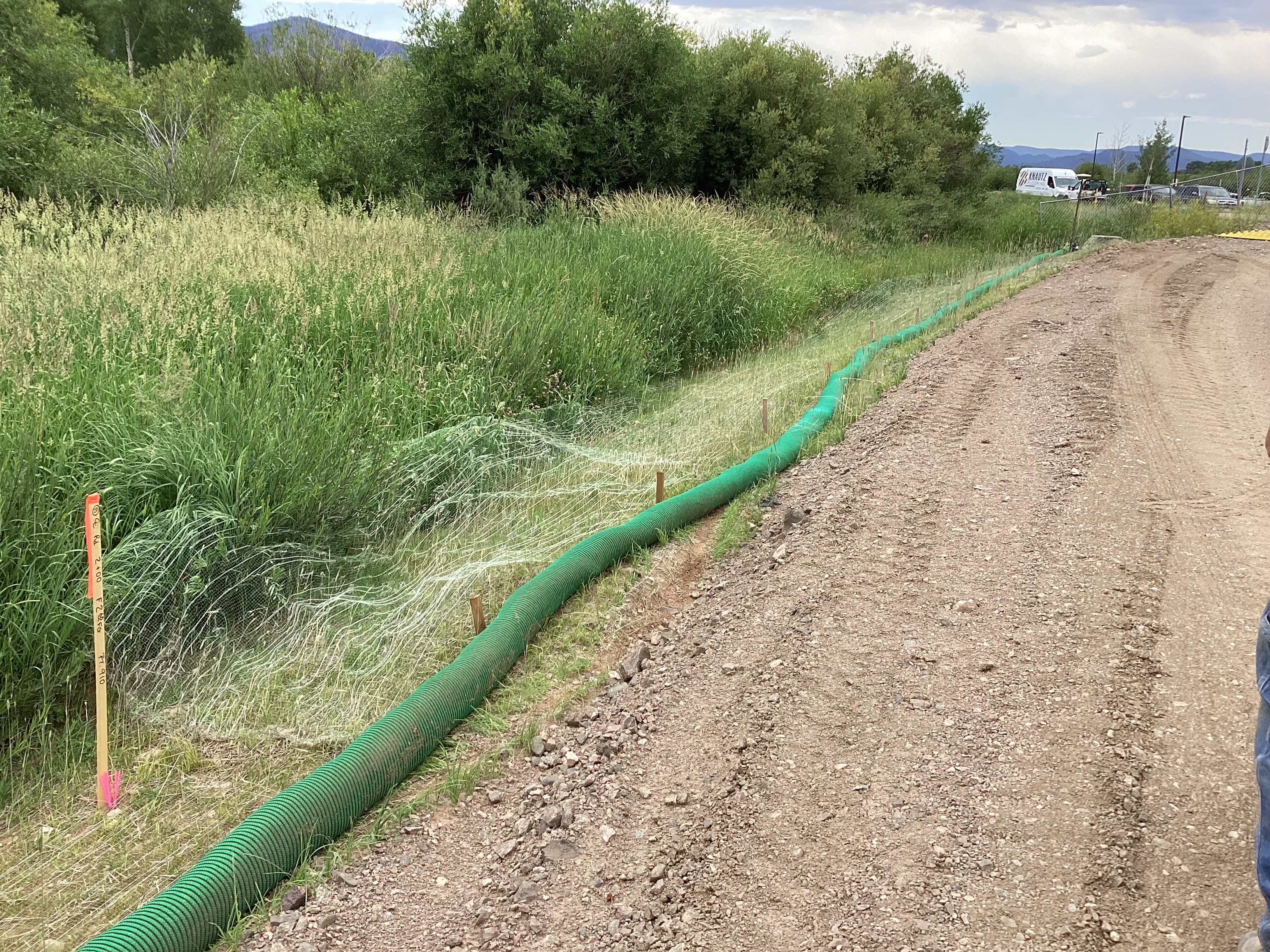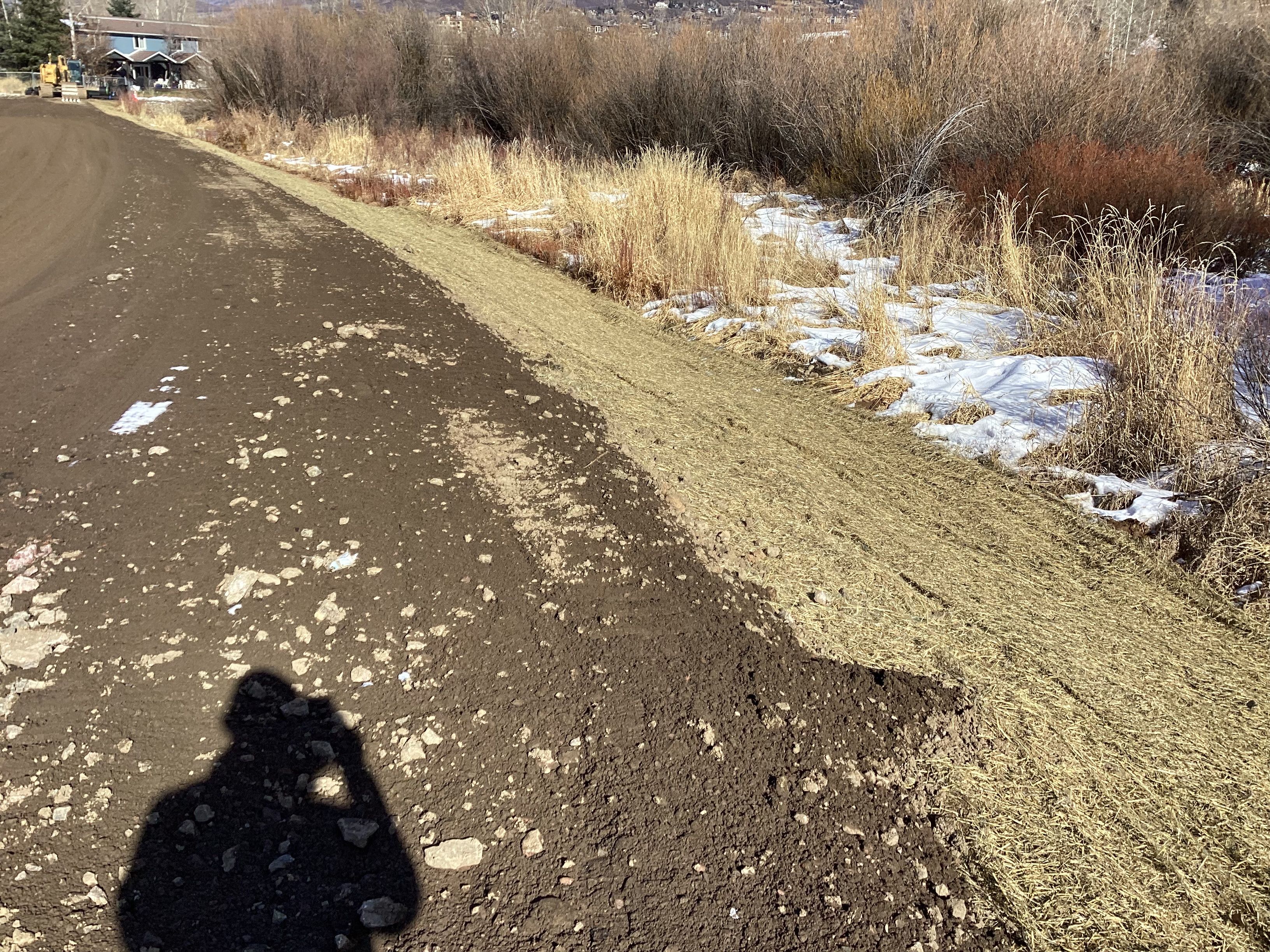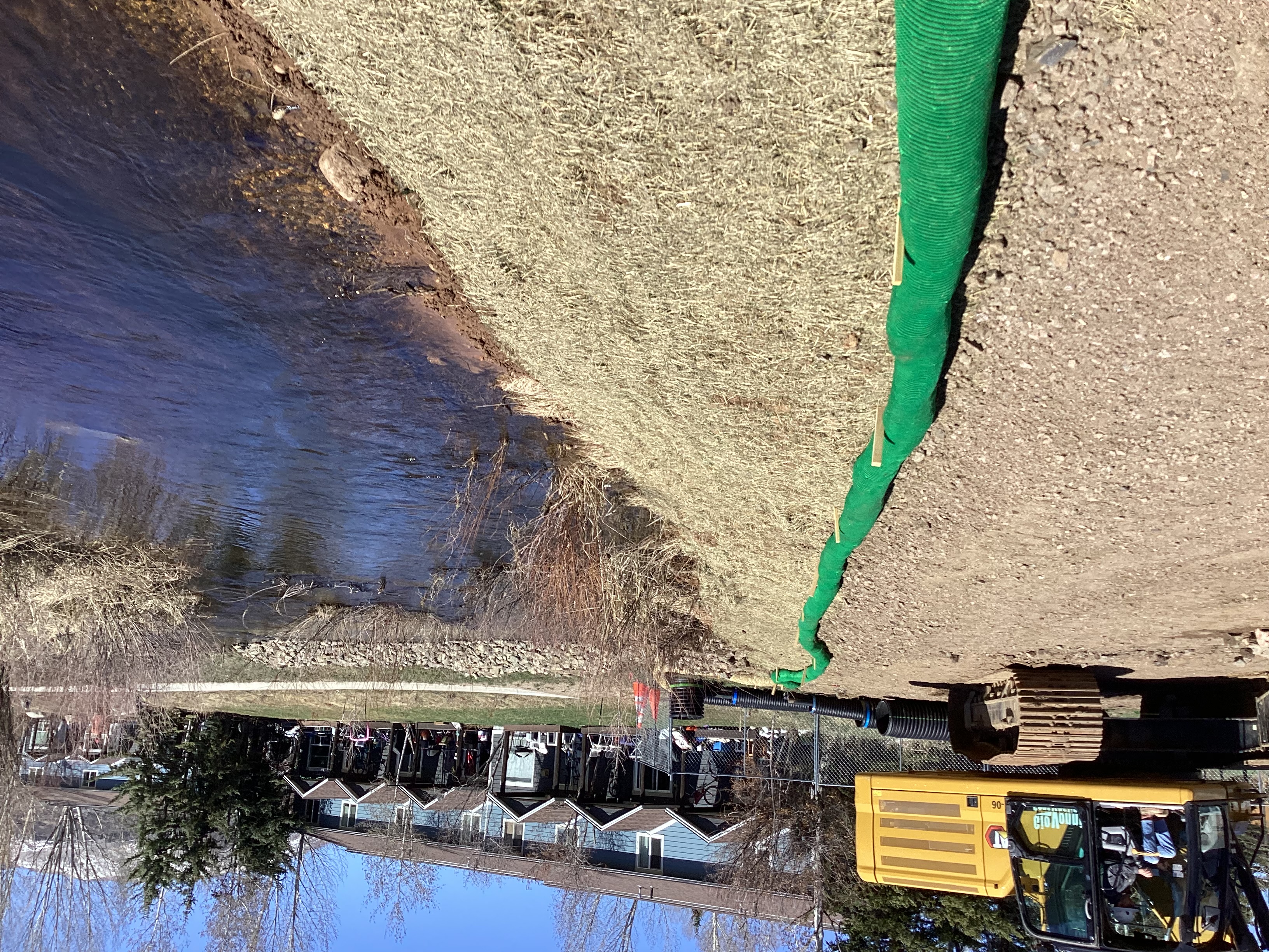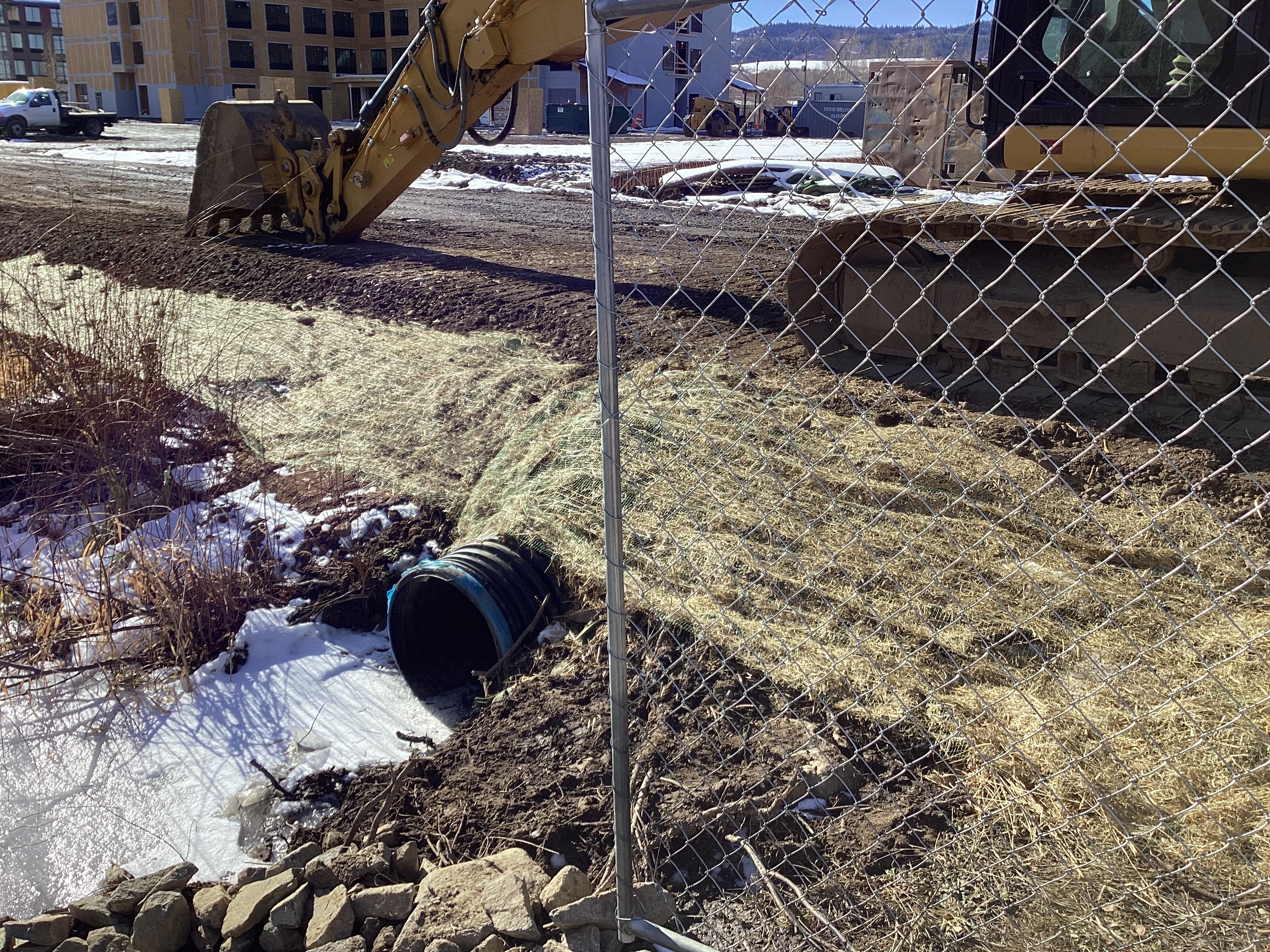 Installation of additional temporary stabilization was needed along the barren section of slope along the road on the east perimeter between the top of the road and the edge of the currently installed erosion control blanket. Temporary soil stabilization is required on all portions of the site where grading and land disturbing activities are complete and on any portion of the site that is inactive for at least 14 days