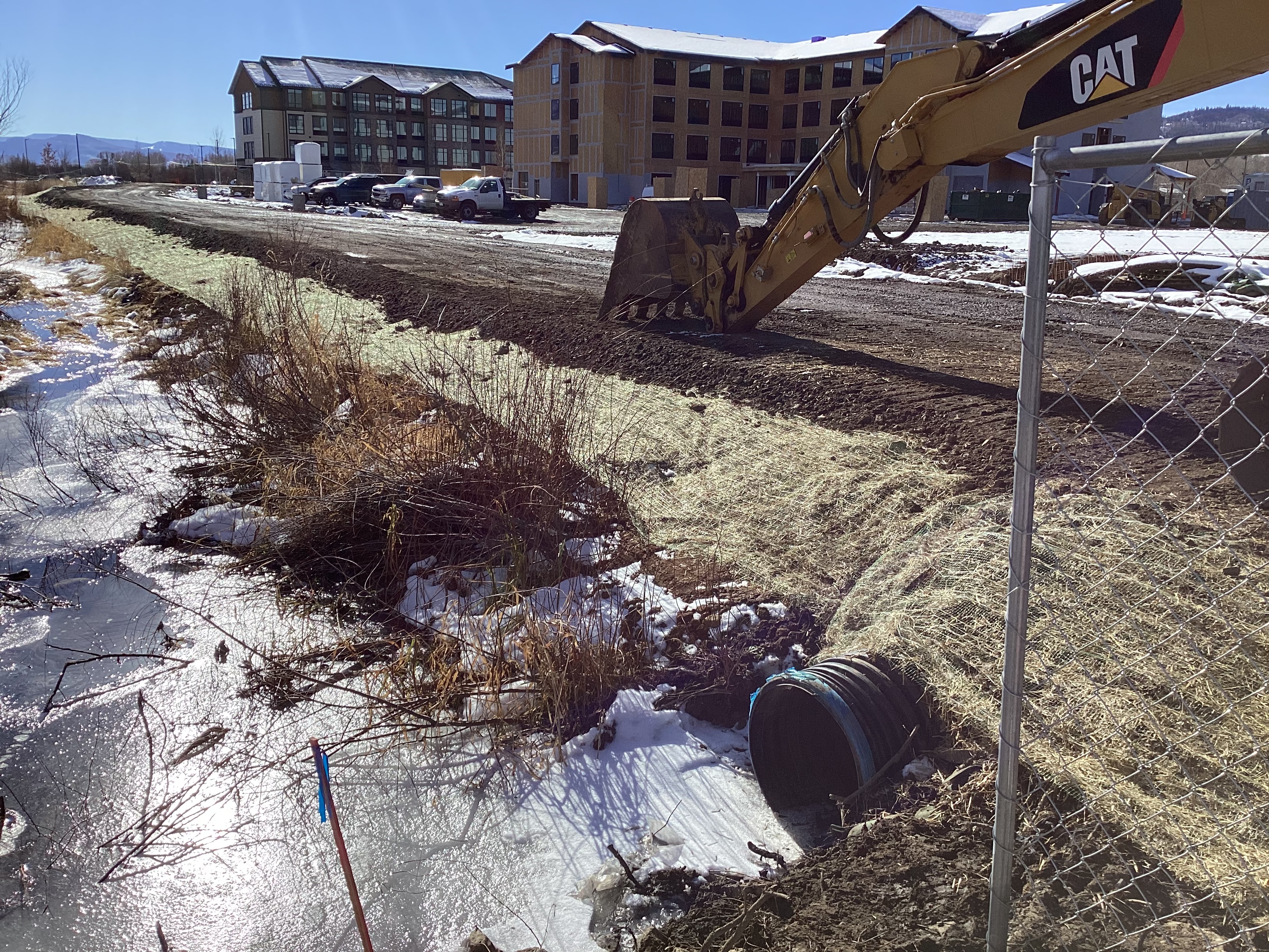 The soil stockpile at the northeast corner adjacent to Walton Creek must be removed immediately to a location away from the creek. In accordance with the specifications provided in the approved SWMP, stockpiles shall be "located away from all drainage system components including storm sewer inlets."