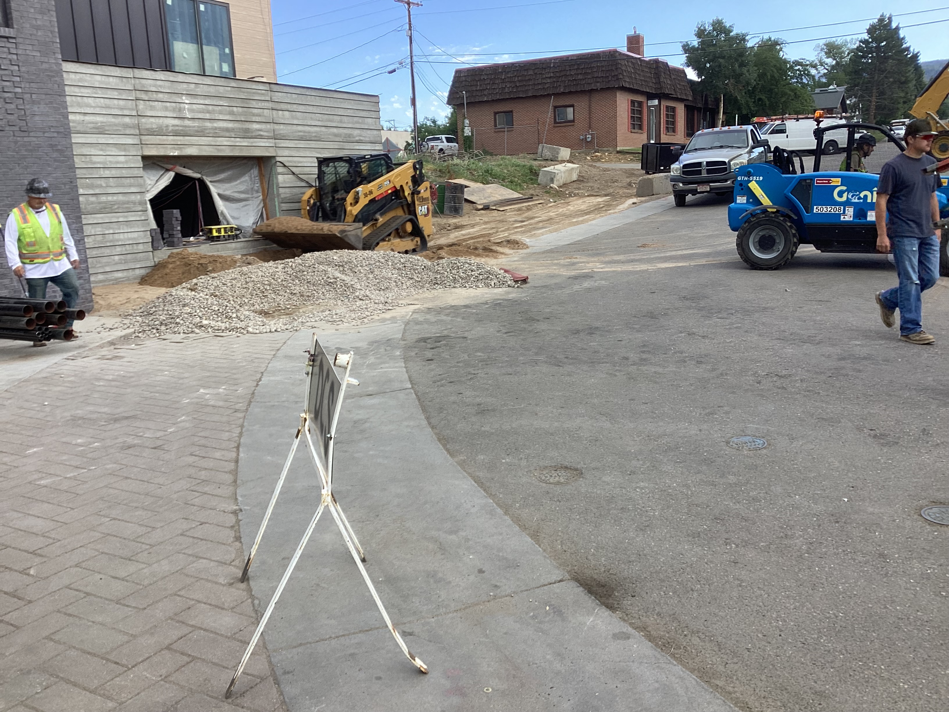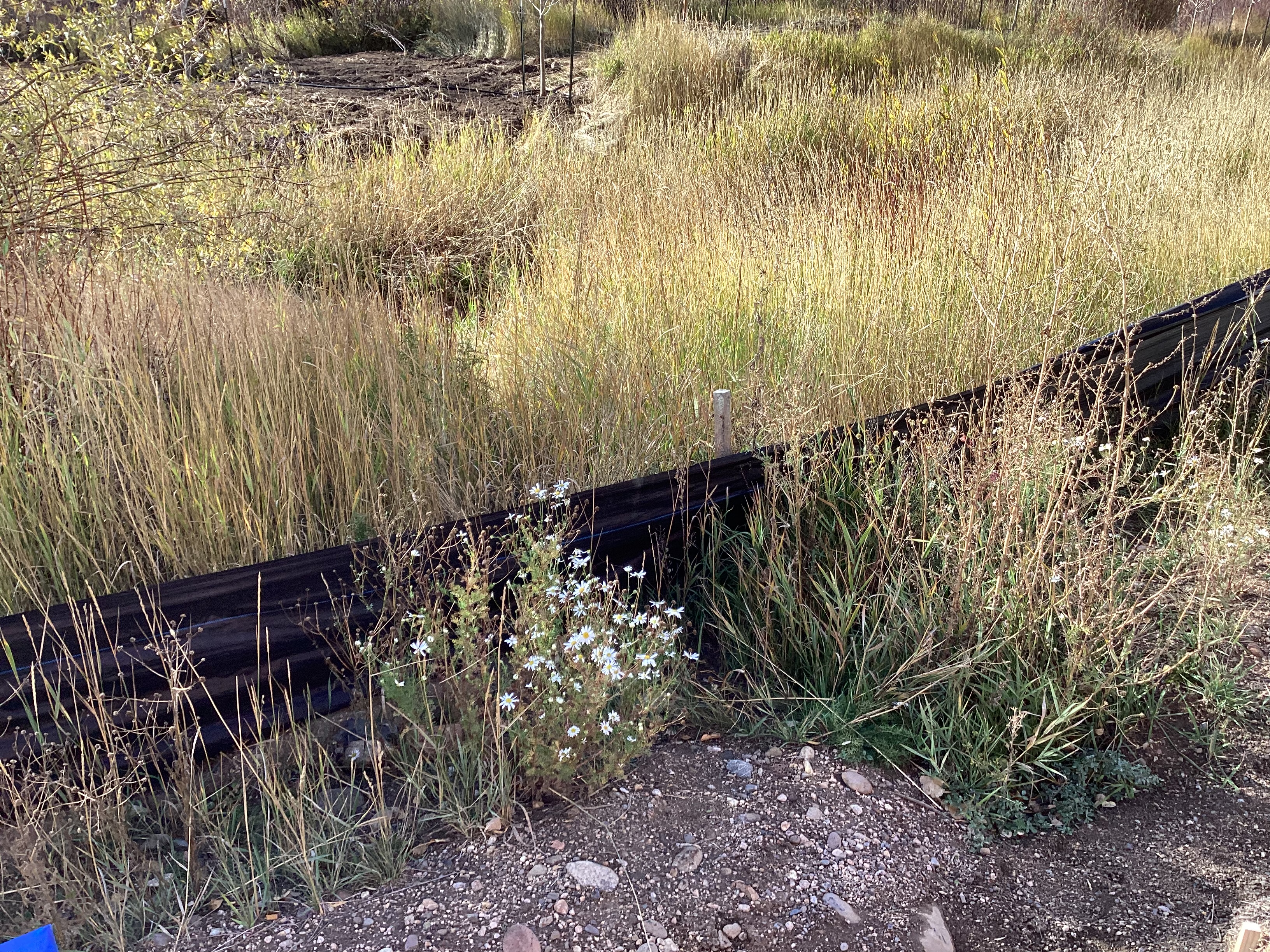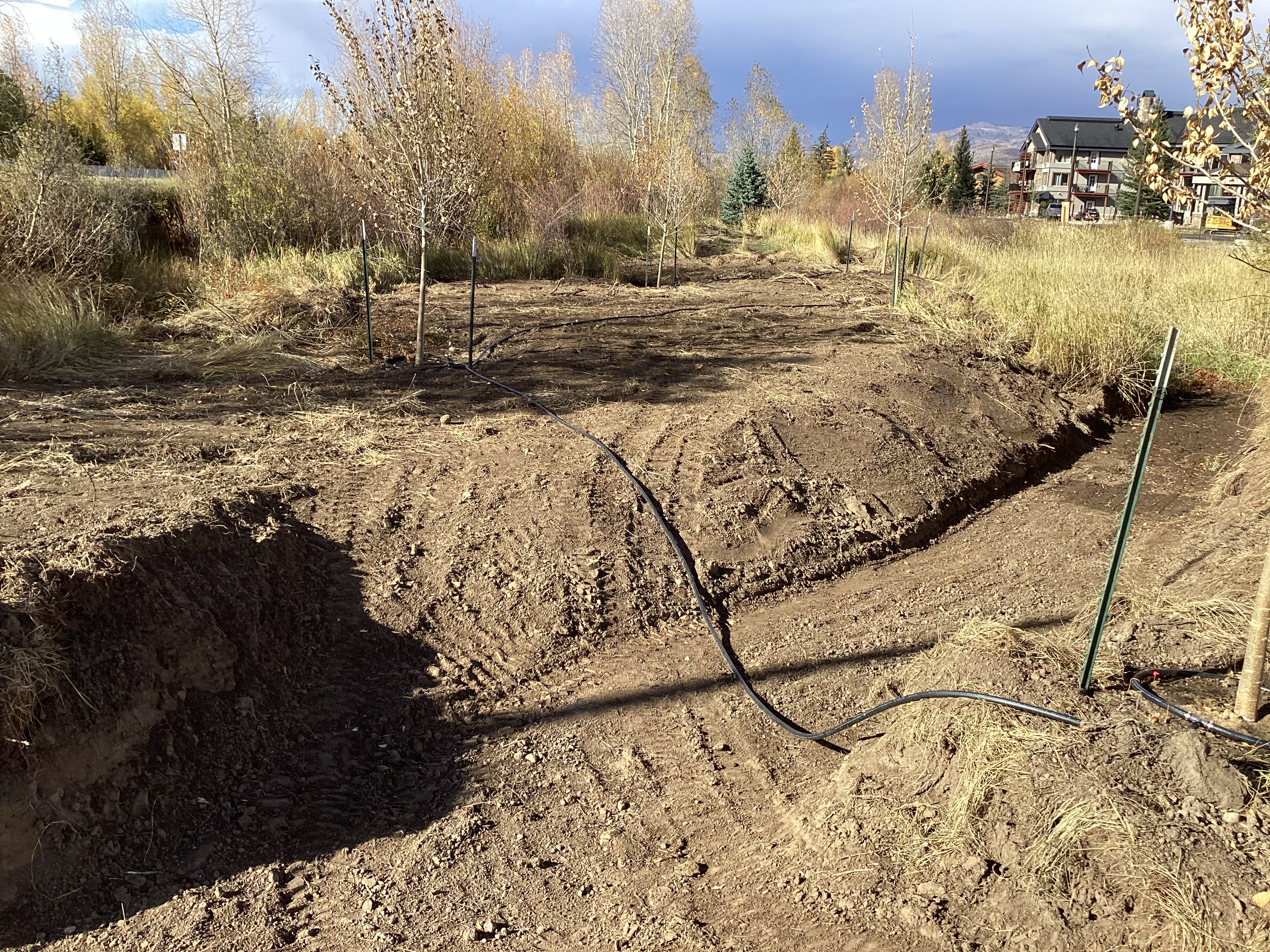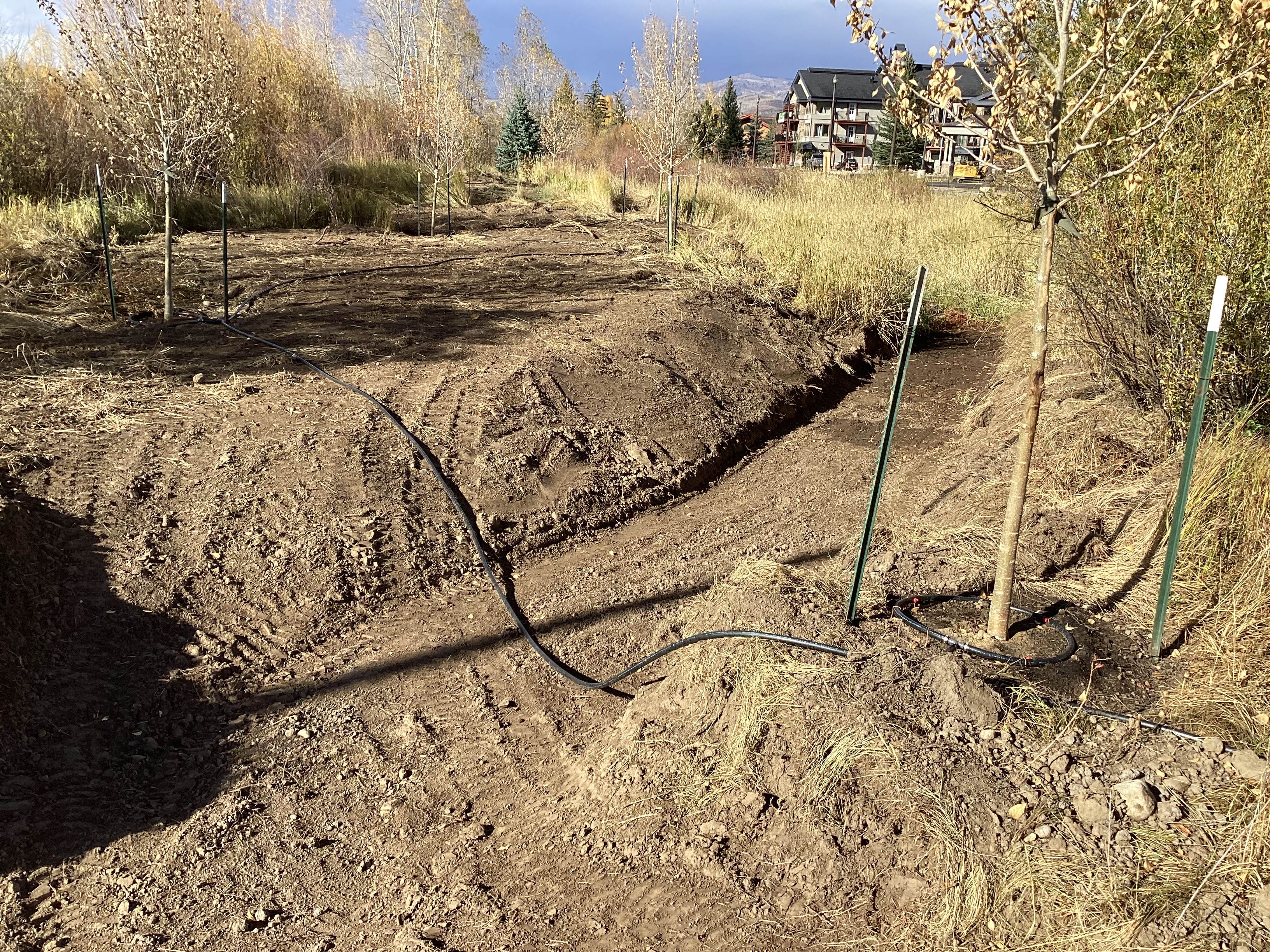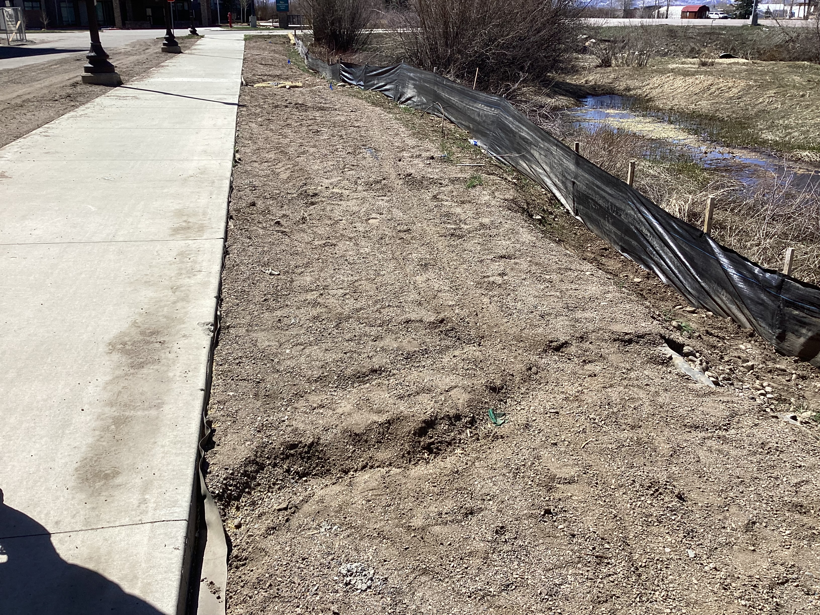 Stabilize disturbed area where landscaping was installed in the drainage area at the southwest corner of the property by November 1. Install erosion control blankets on slopes steeper than 3:1. Temporary soil stabilization is required on all portions of the site where grading and land disturbing activities are complete and on any portion of the site that is inactive for at least 14 days. Soil stabilization includes temporary seeding, hydroseeding, tackifier application, mulching, hydromulching, compacting, surface roughening, tarping, and installing erosion control blankets.