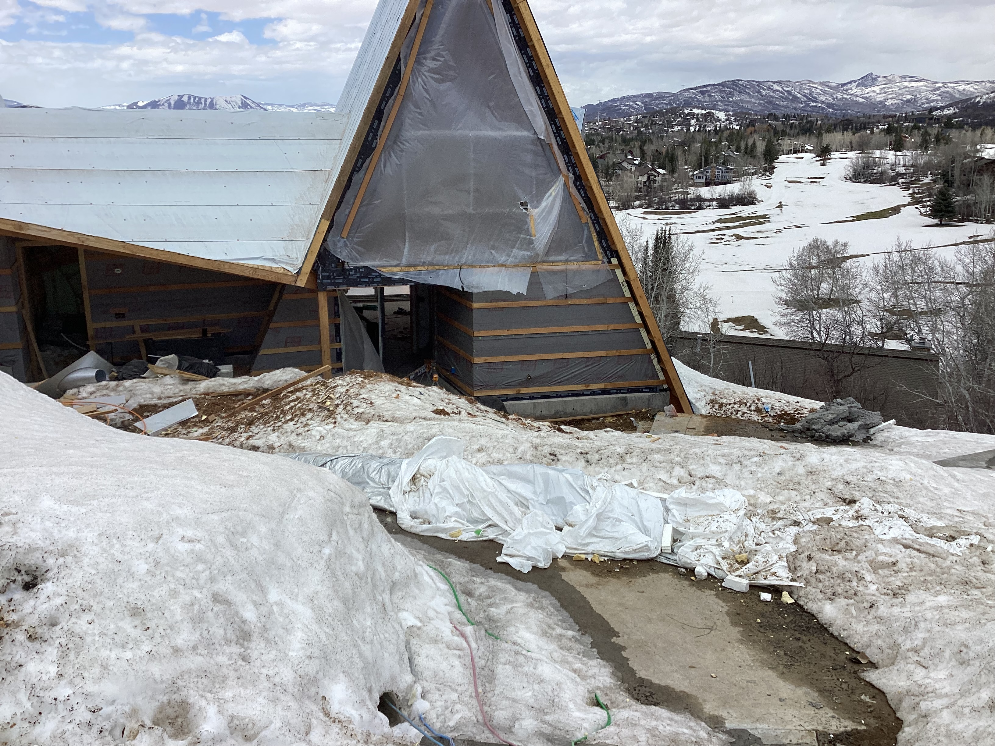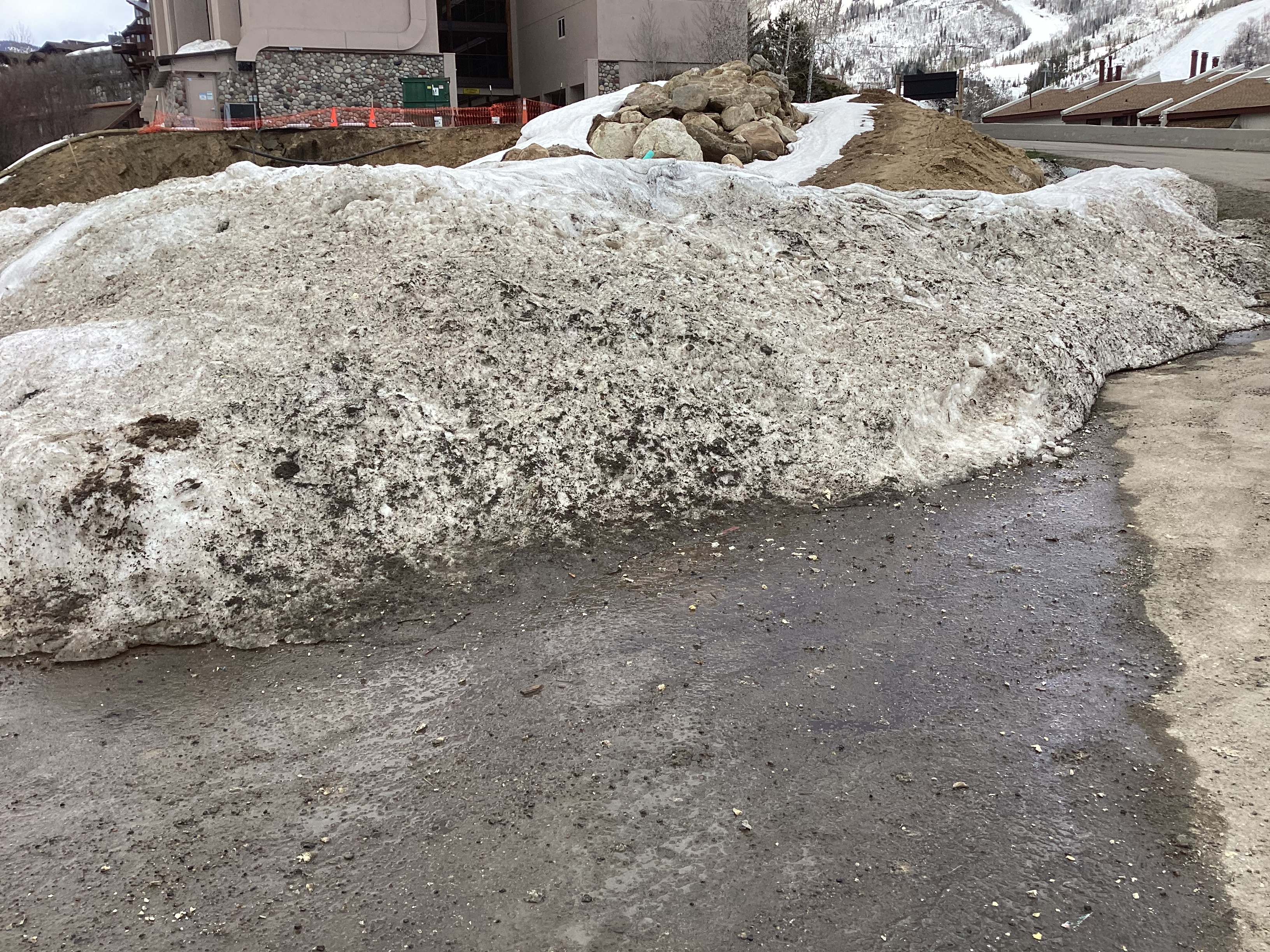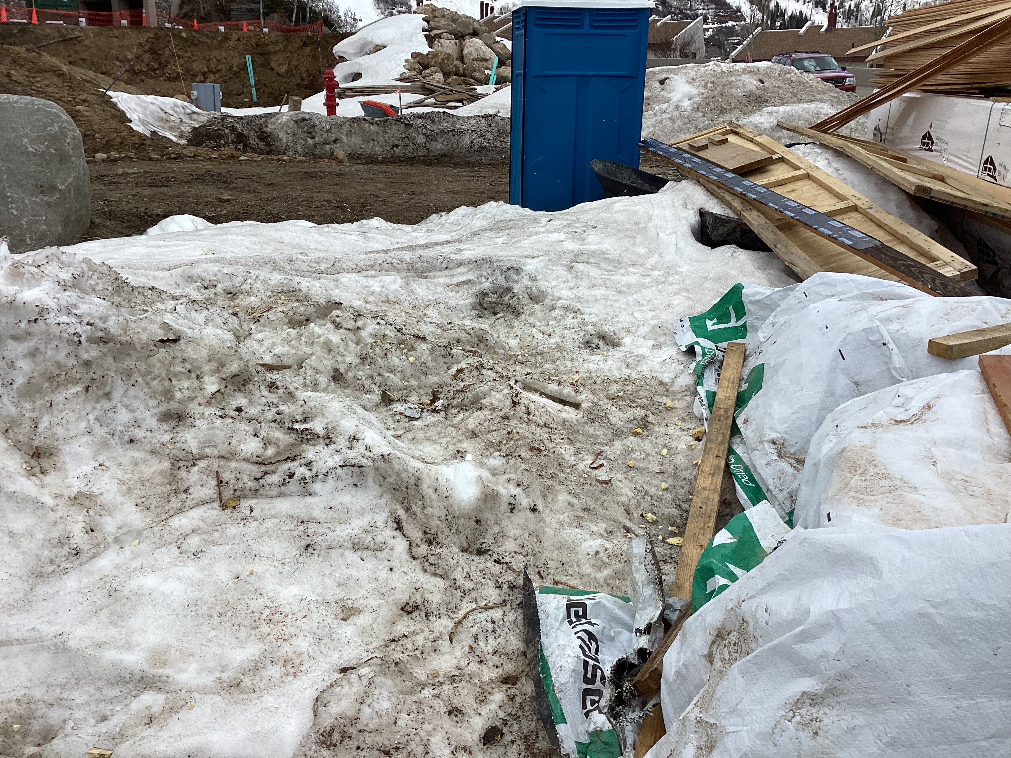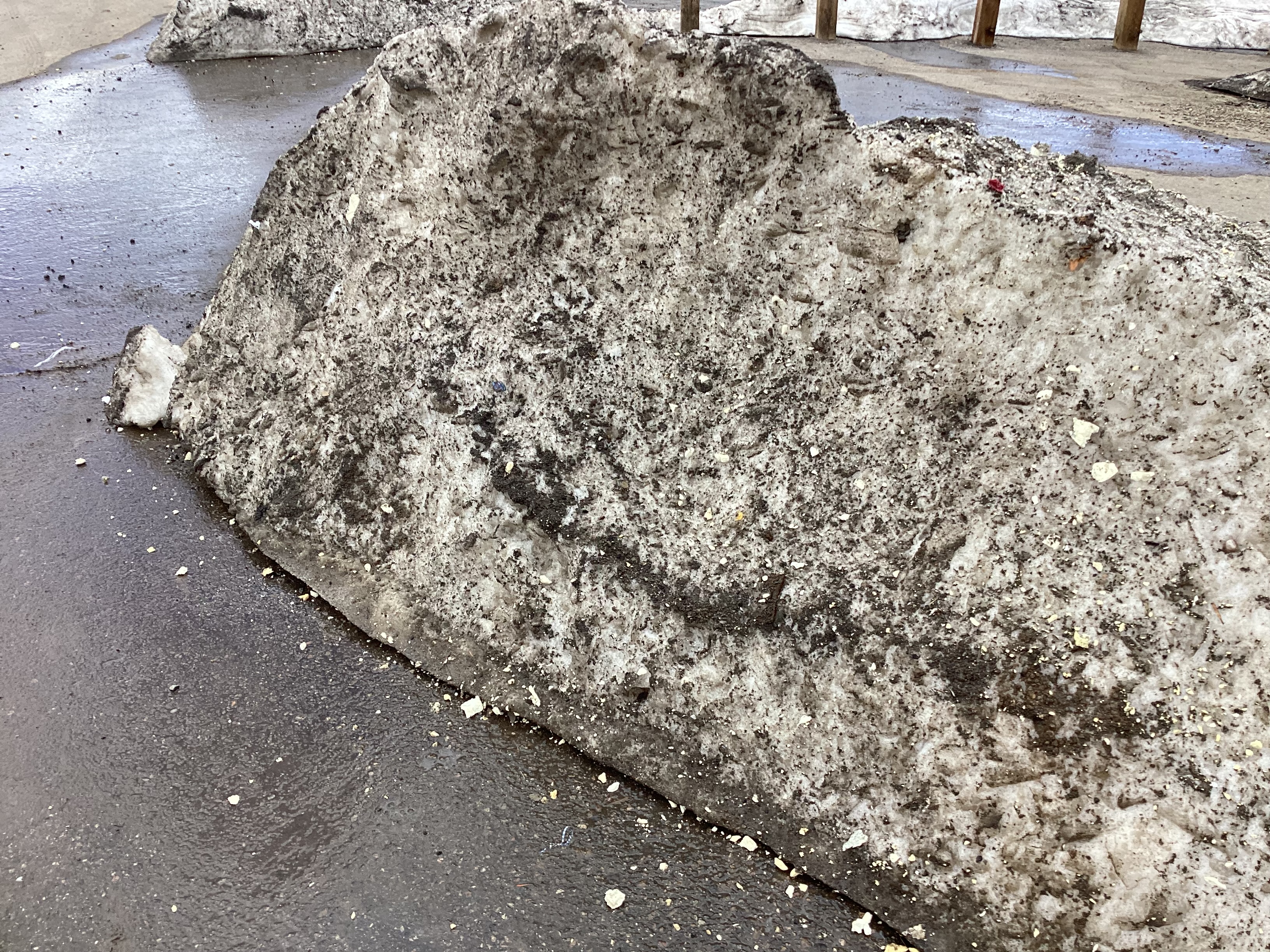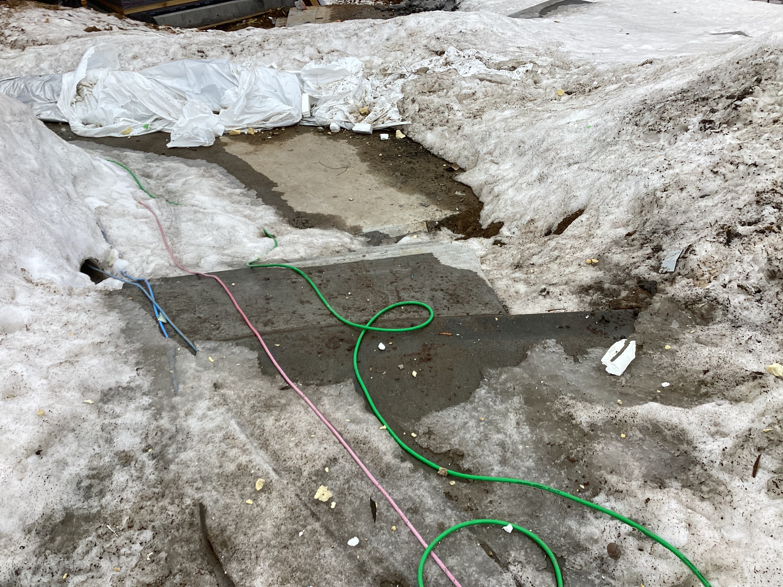 Clean up all trash in front of property and in surrounding snow storage piles. Especially micro bits of insulation board.